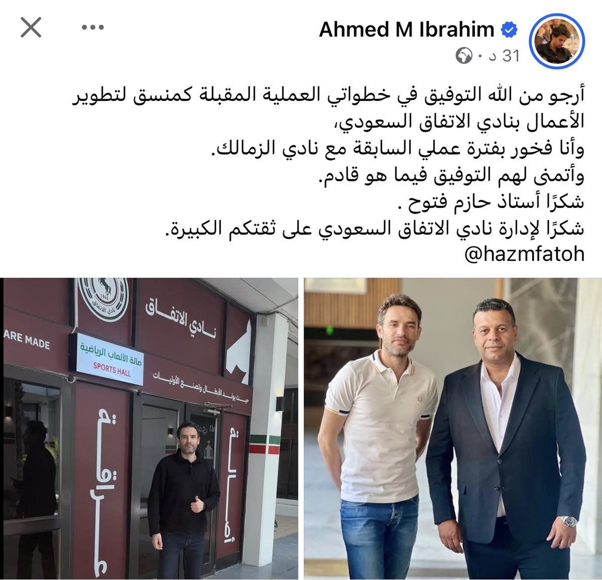 أعلن أحمد إبراهيم مدير شئون اللاعبين بالفريق الاول لكرة القدم بنادي الزمالك رحيله عن منصبه من القلعة البيضاء وكتب عبر حسابه