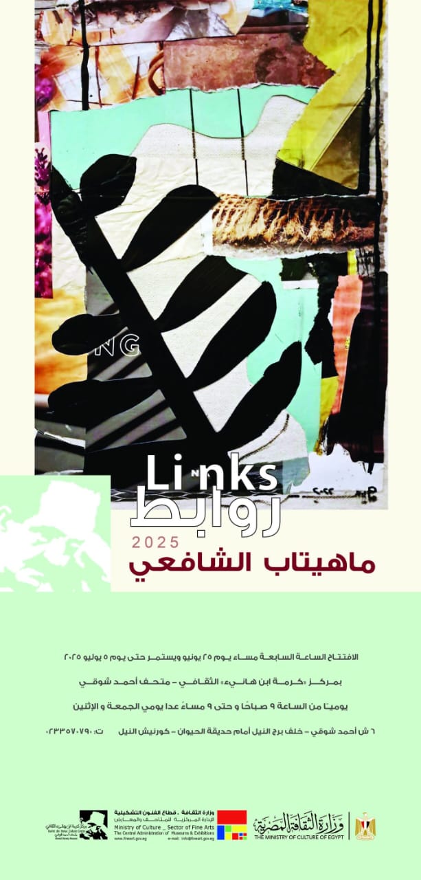 يستضيف مركز كرمة بن هانئ الثقافي، التابع لـ قطاع الفنون التشكيلية برئاسة الدكتور وليد قانوش، معرضًا فنيًا مميزًا للفنانة التشكيلية الدكتورة ماهيتاب الشافعي، تحت عنوان "روابط".