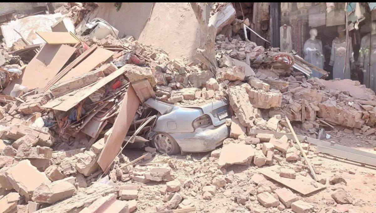 وبالفحص تبين سقوط عقار مكون من 3 طوابق.