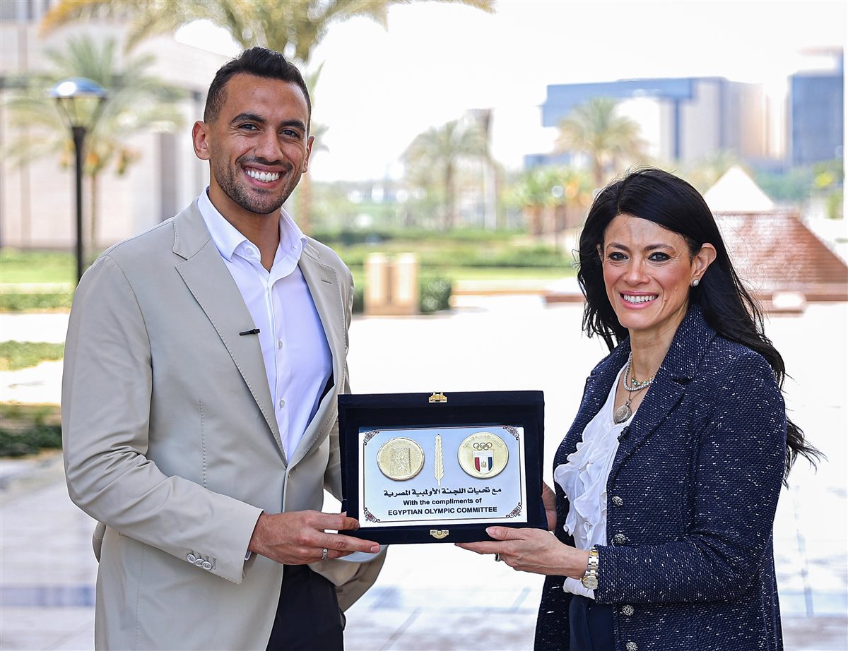 وقدم اللاعب أحمد الجندي، رئيس لجنة اللاعبين الأولمبية وعضو مجلس إدارة اللجنة الأولمبية، درع اللجنة الأولمبية المصرية، تكريمًا للدكتورة رانيا المشاط، وزيرة التخطيط والتنمية الاقتصادية والتعاون الدولي.