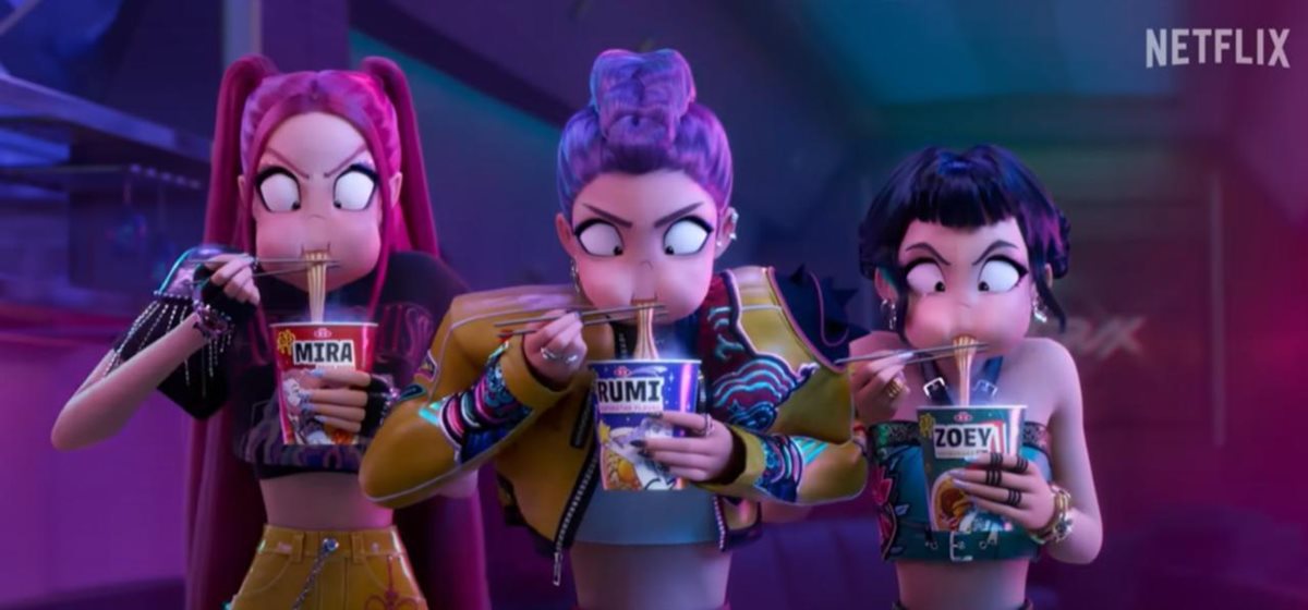 وتدور أحداث الفيلم، من إخراج ماجي كانغ وكريس أبلهانز، حول رومي وميرا وزوي، عضوات فرقة الكيبوب الخيالية "هانتريكس".