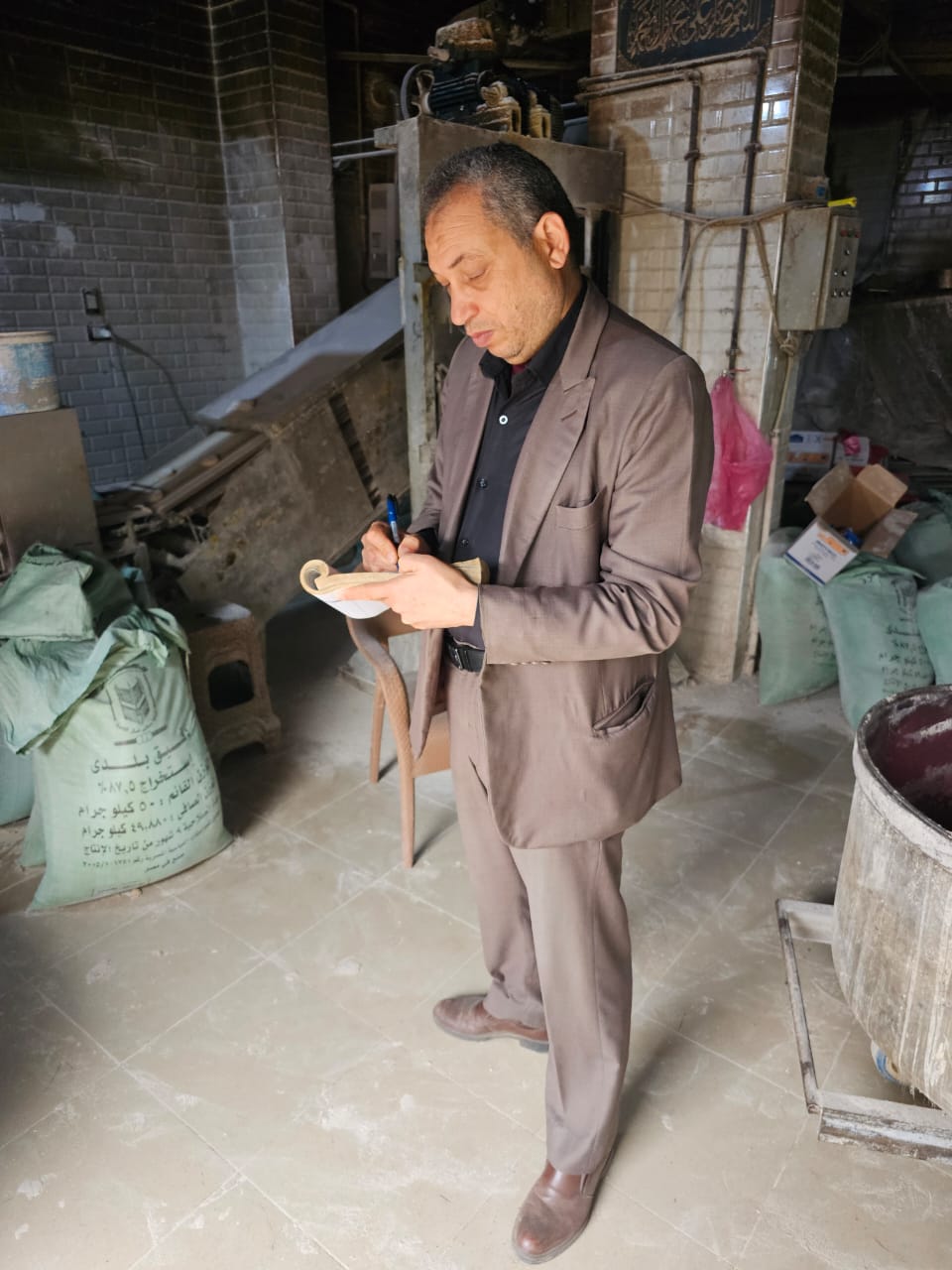 * محضر تصرف في 3 شكائر دقيق.