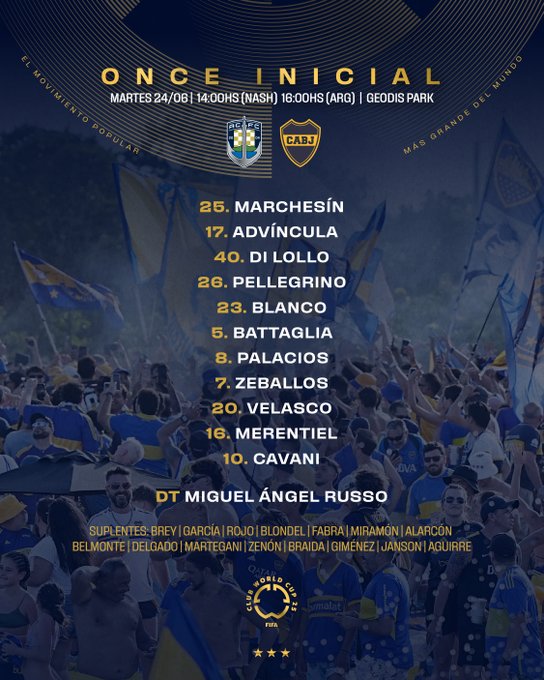 مونديال الأندية، تقدم فريق بوكا جونيورز الأرجنتيني على نظيره أوكلاند سيتي النيوزيلندي، بنتيجة 1-0، في الشوط الأول من المباراة التي تجمع بينهما اليوم الثلاثاء في الجولة الثالثة والأخيرة بدور المجموعات لحساب المجموعة الثالثة، في بطولة كأس العالم للأندية 2025، المقامة حاليا في الولايات المتحدة الأمريكية.