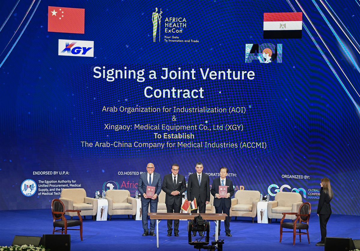 شهد الدكتور "خالد عبد الغفار " نائب رئيس مجلس الوزراء للتنمية البشرية وزير الصحة والسكان توقيع عقد الشراكة بين الهيئة العربية للتصنيع وشركة للأجهزة الطبية (XGY) لتأسيس الشركة العربية - الصينية للصناعات الطبية, الذي وقعه كل من: اللواء أ.ح مهندس "مختار عبد اللطيف" رئيس الهيئة العربية للتصنيع , الدكتور "جاو دا تين " رئيس مجلس إدارة شركة