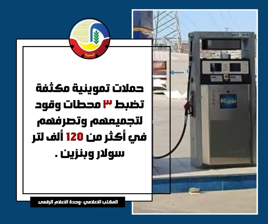 ضبط 3 محطات لتجميعهم وتصرفهم في 120 ألف لتر سولار وبنزين بالبحيرة