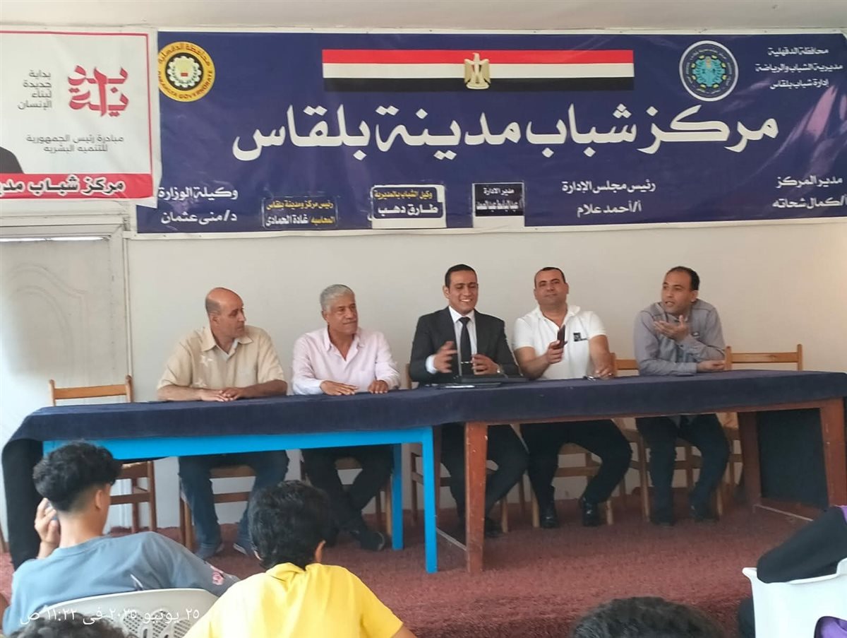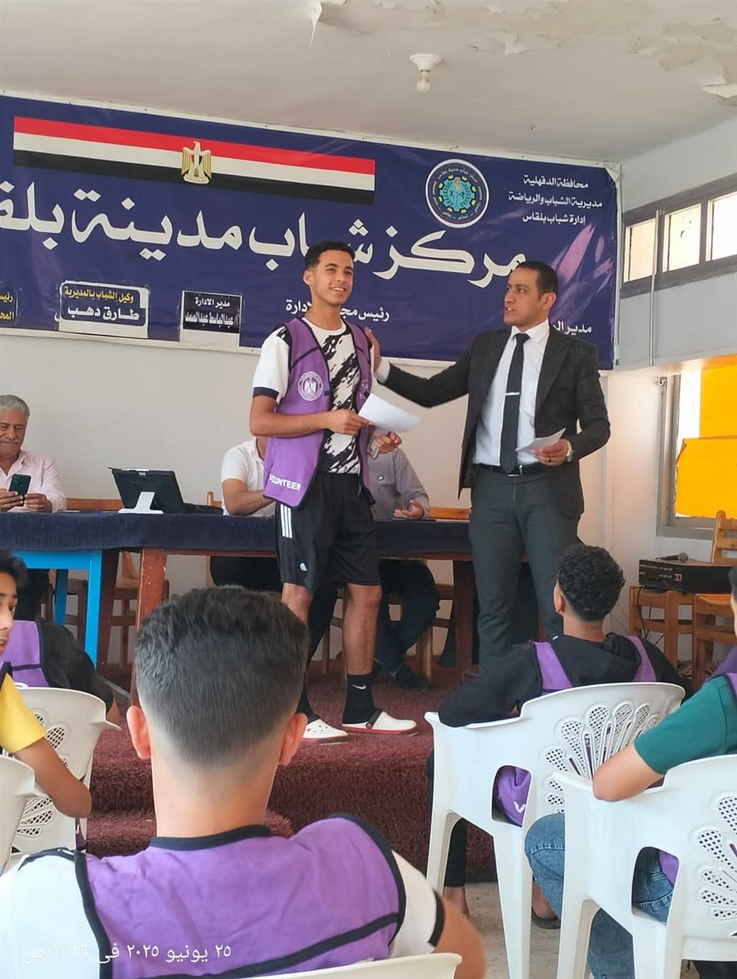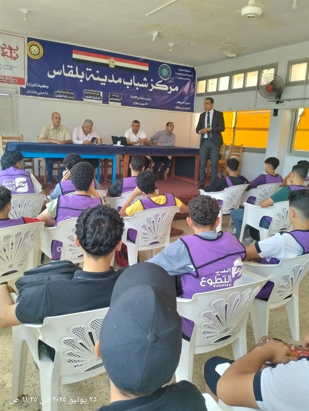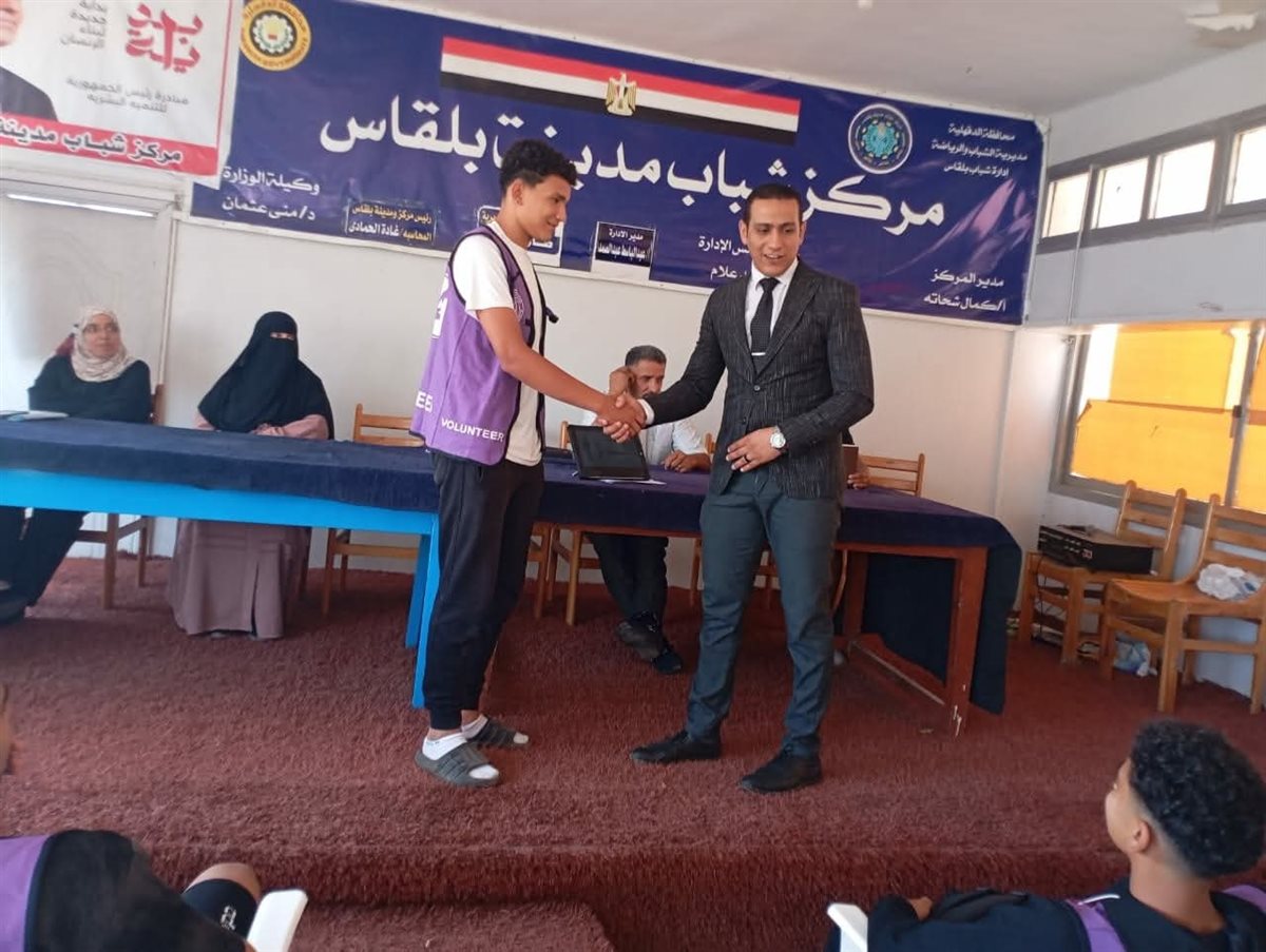 وبحضور عبدالباسط عبدالصمد مدير إدارة شباب بلقاس، واحمد علام رئيس مجلس ادارة مركز شباب مدينة بلقاس، والدكتور محمد عبدالقادر رئيس قسم الشباب، ونور الفاروق رئيس قسم المتابعة، وامانى محمد رئيس قسم الرياضة، ورانيا صالح مسئول قسم الشباب، وكمال شحاته المدير التنفيذي بمركز شباب مدينة بلقاس.