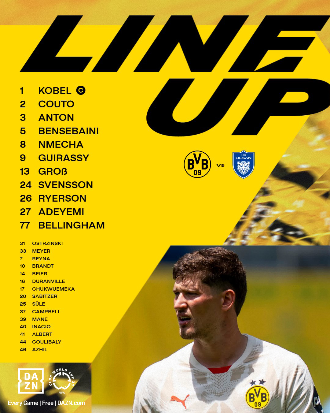 وكان مدرب فريق بوروسيا دورتموند اعلن عن تشكيل فريقه لمواجهة أولسان هيونداي في الجولة الثالثة من دور المجموعات لبطولة كأس العالم للأندية والذي جاء كالتالي: