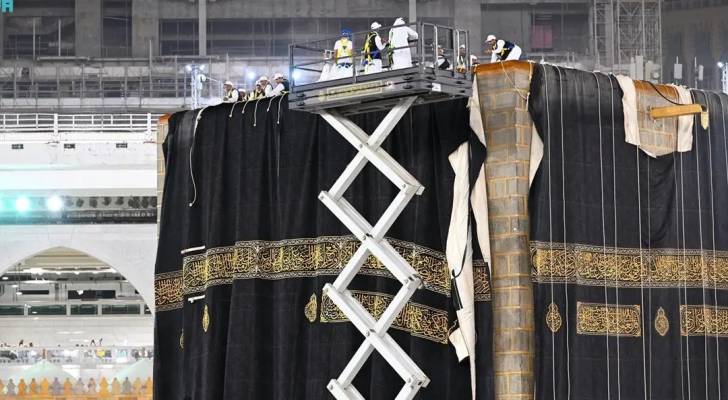 استبدلت السلطات السعودية، خلال الساعات الماضية كسوة الكعبة المشرفة بالتزامن مع حلول العام الهجري الجديد 1447، وقالت الهيئة العامة للعناية بشؤون المسجد الحرام والمسجد النبوي، في بيان: إن فريقا سعوديا مؤهلا يضم 154 صانعا وحرفيا أشرف على عملية تبديل كسوة الكعبة، حيث بدأت عملية تبديل الكسوة بفك المذهبات والقناديل والحُلي المثبتة على الكسوة القديمة.