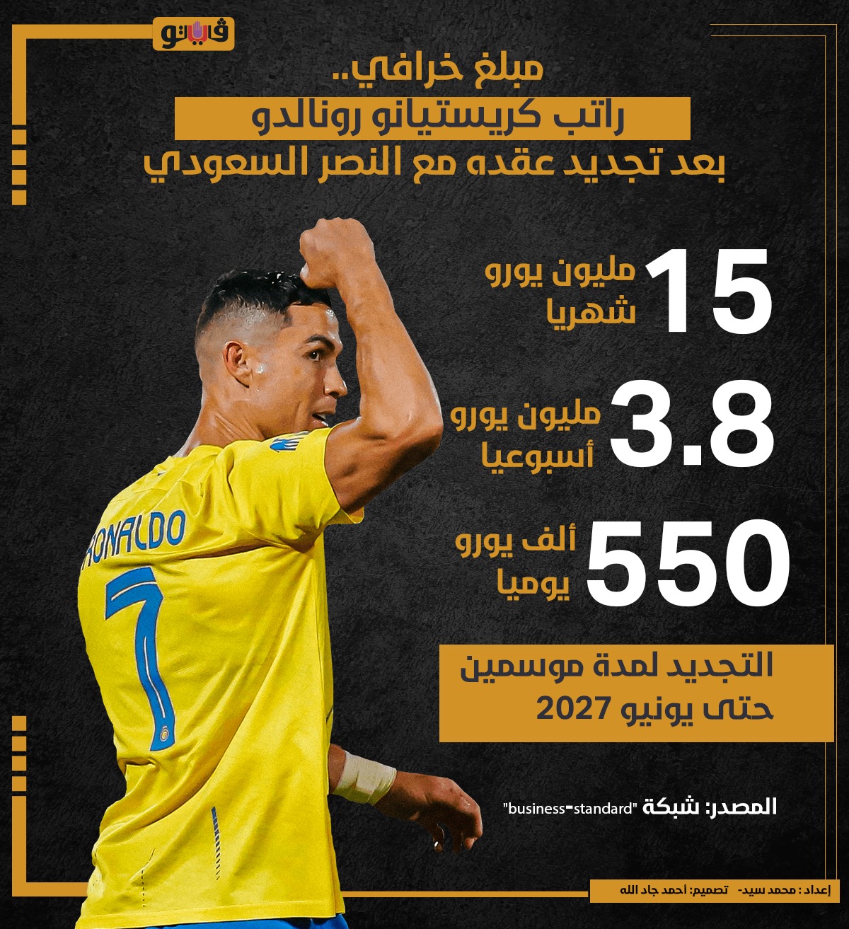 مبلغ خرافي.. راتب كريستيانو رونالدو بعد تجديد عقده مع النصر السعودي (إنفوجراف)