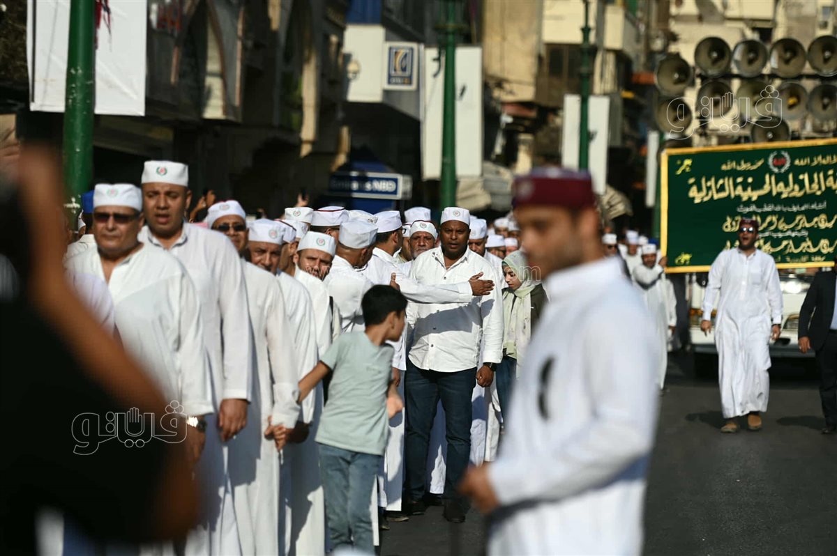 وصلت، منذ قليل، مسيرة الطرق الصوفية التي انطلقت من منطقة الدراسة، احتفالا بالهجرة النبوية، إلى مسجد الحسين.