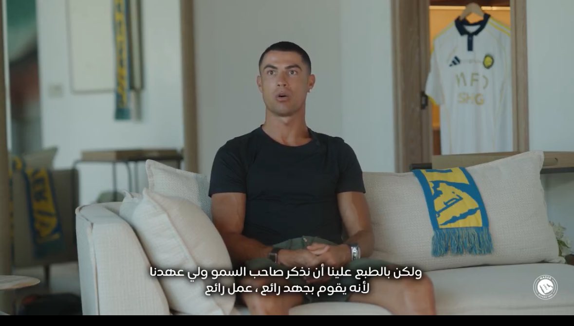 وأجرى كريستيانو رونالدو مقابلة بالفيديو عبر الموقع الرسمي لفريق النصر السعودي قائلًا: أومن بالمشروع، أومن بالنصر، أومن بجماهيرنا.