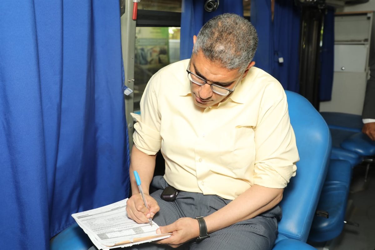 في اليوم العالمي له، محافظ الجيزة يشارك بالتبرع بالدم