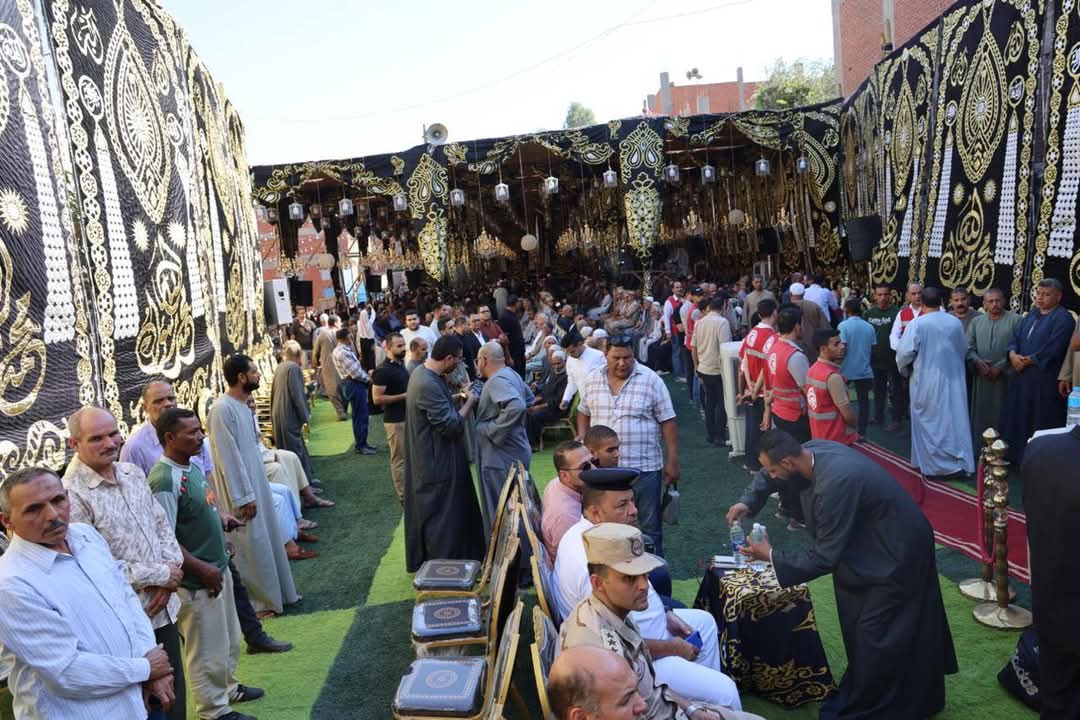 وتقدم المحافظ صفوف متلقي العزاء بالسرادق الجماعي المقام بالقرية بحضور اللواء عبدالله الديب السكرتير العام، المحاسب خالد النمر السكرتير العام المساعد، الدكتور صبحى شرف نائب رئيس جامعة المنوفية لشئون خدمة المجتمع، الدكتور ناصر عبد الباري نائب رئيس الجامعة لشئون التعليم والطلاب، العميد محمد جعفر المستشار العسكري للمحافظة، الدكتور شوقى علام مفتى الجمهورية السابق، الدكتور محمد رجب خليفة وكيل وزارة الأوقاف، الدكتور محمد صلاح وكيل وزارة التربية والتعليم، الدكتور عمرو مصطفي وكيل وزارة الصحة، محمد جمعة وكيل وزارة التضامن الاجتماعى، محمد موسى رئيس مجلس إدارة جمعية الهلال الأحمر بالمنوفية، عدد من أعضاء مجلسي النواب والشيوخ، رئيس الوحدة المحلية لمركز ومدينة منوف، وجمع غفير من أهالي القرية والشخصيات العامة.