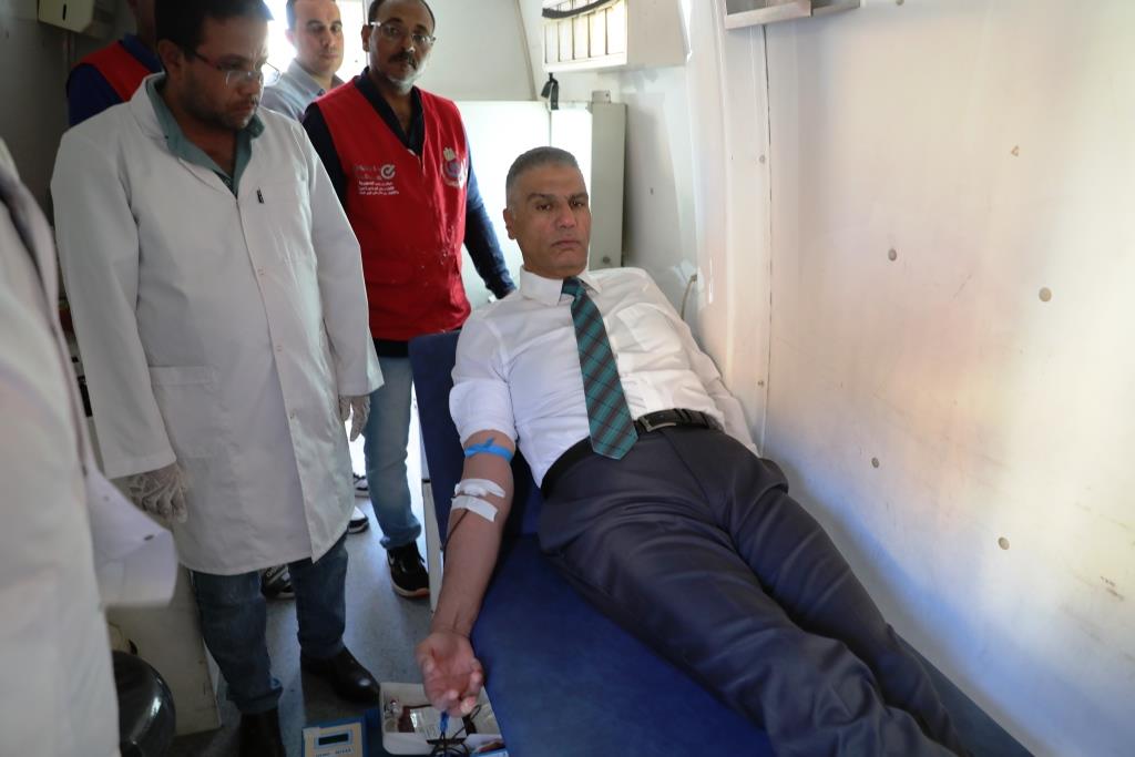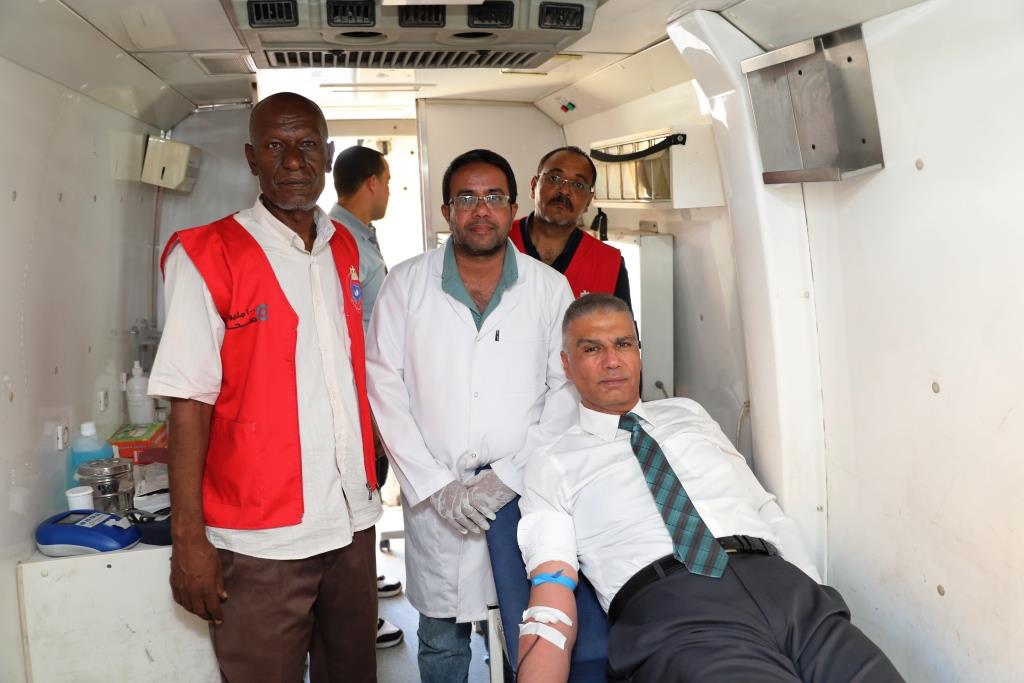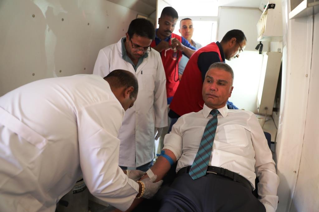 أعقبها قيام المحافظ بالتبرع بالدم بأحد النقاط المتحركة تأكيدًا على مشاركة جميع أفراد وفئات المجتمع فى هذا العمل الإنساني الجليل.