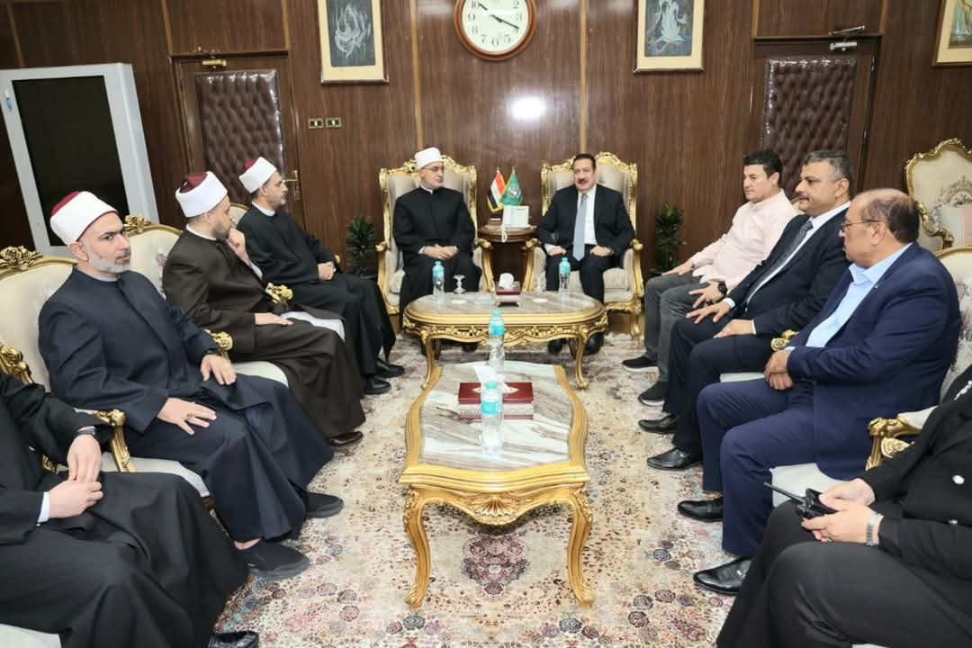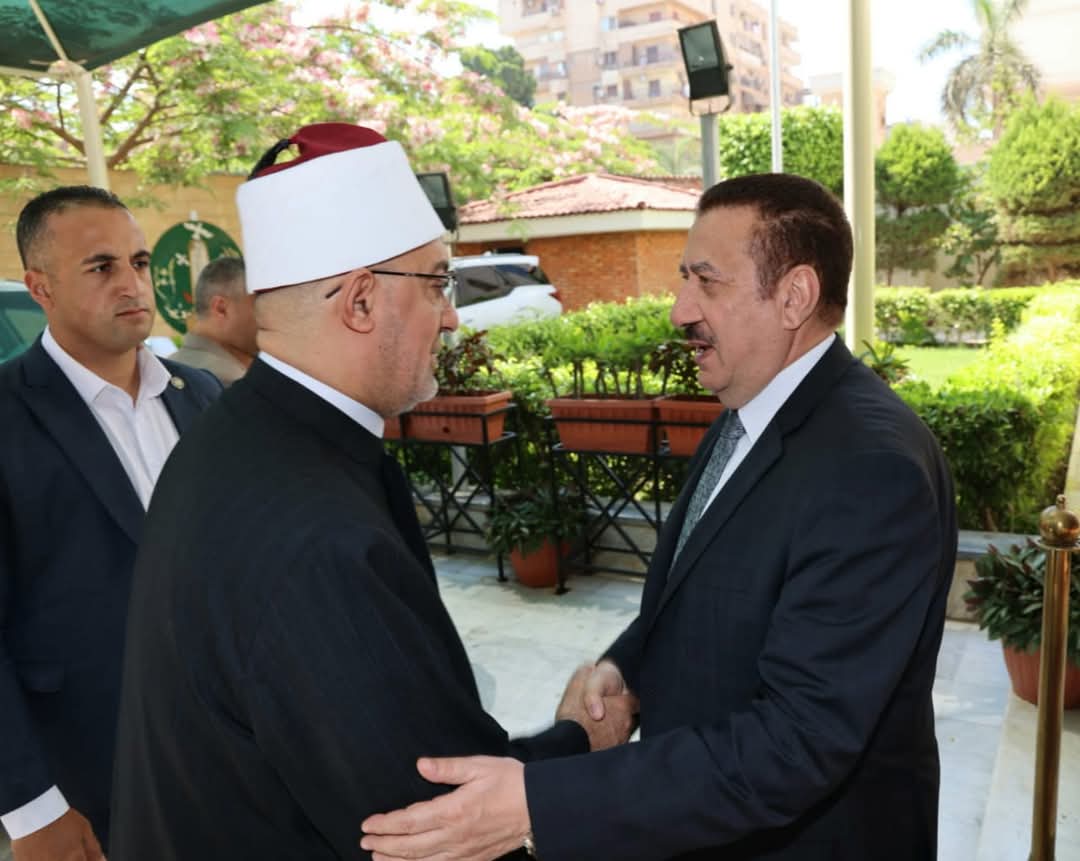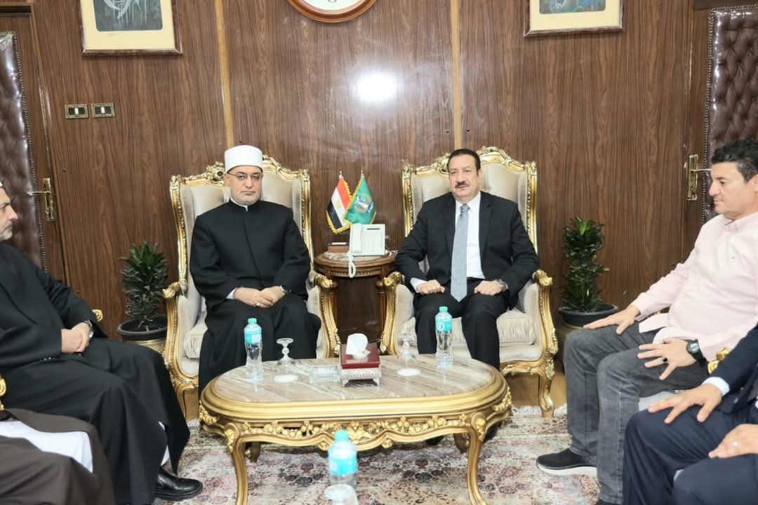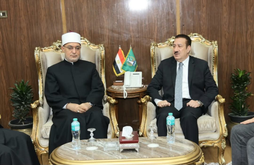 محافظ المنوفية يستقبل مفتي الجمهورية بمكتبه لتقديم العزاء في شهداء حادث الإقليمي