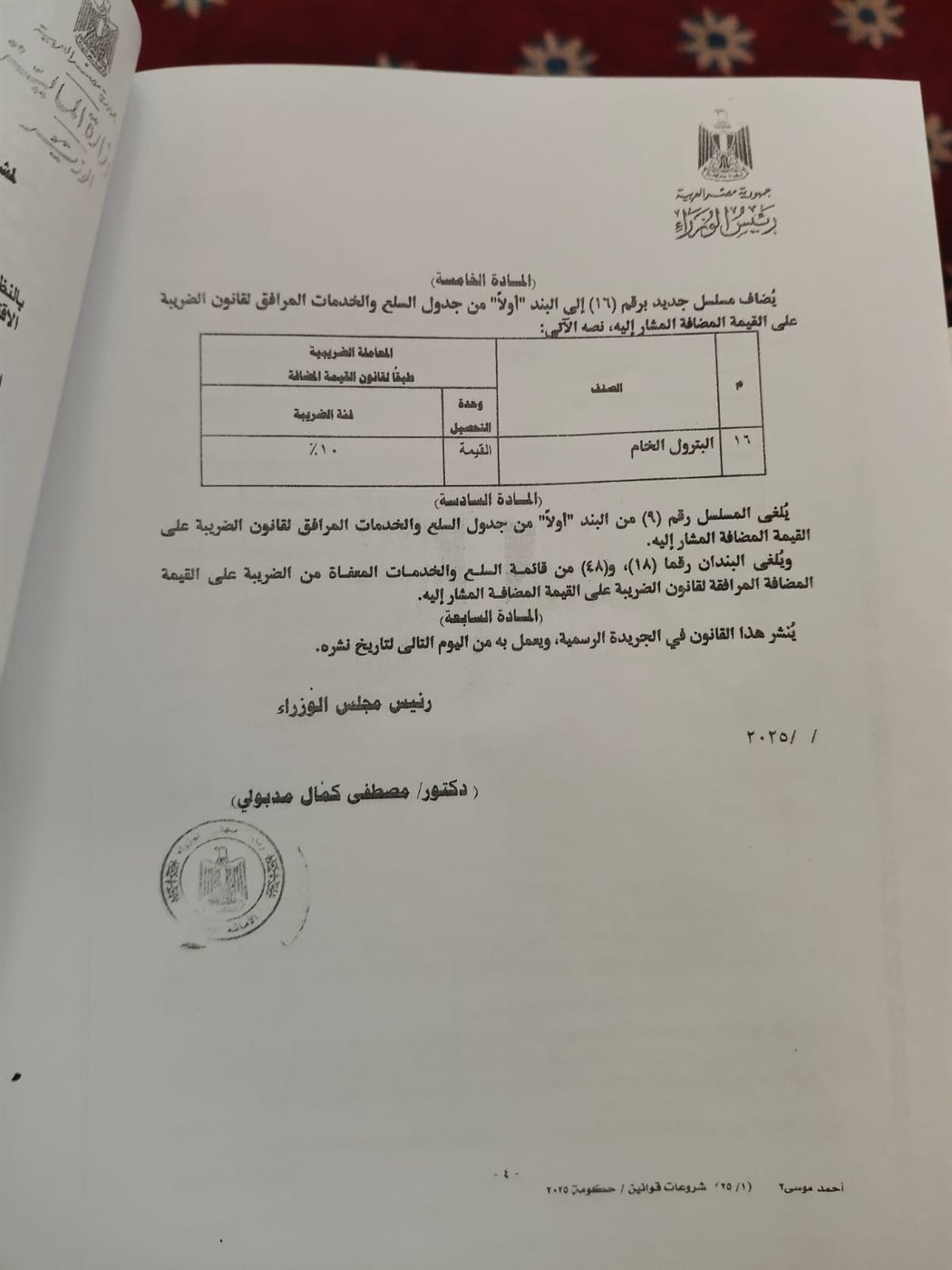 وكانت فـيتـو حصلت على نص مشروع قانون تقدمت به الحكومة لتعديل بعض أحكام قانون الضريبة على القيمة المضافة الصادر بالقانون رقم 67 لسنة 2016، بهدف تعزيز الموارد المالية للدولة وتحقيق العدالة الضريبية والاجتماعية.