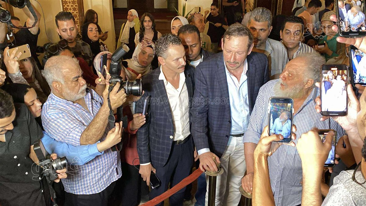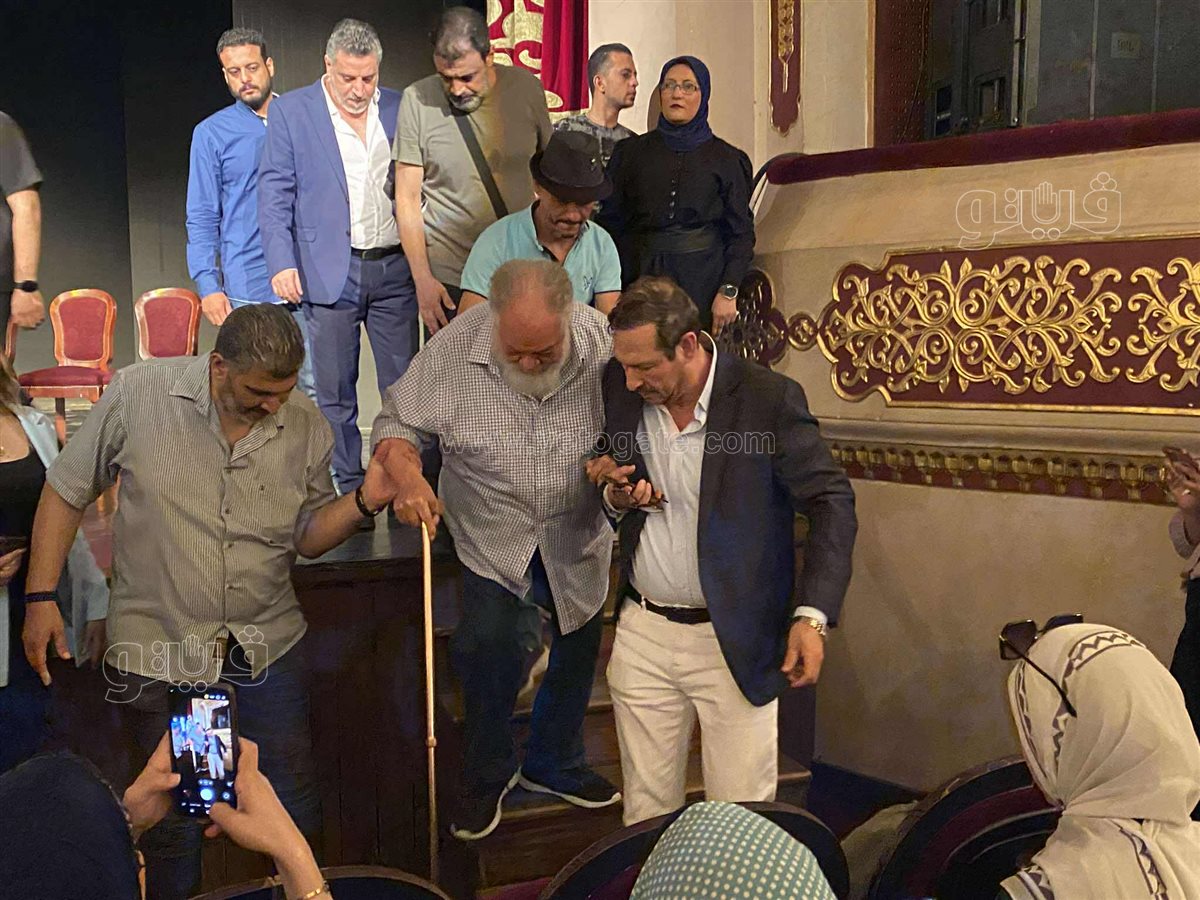 واستقبل الدكتور أيمن الشيوي مدير فرقة المسرح القومي الفنان يحيى الفخراني، كما قام في لفتة إنسانية ب"سنده" أثناء تواجده وجركته بالمسرح.