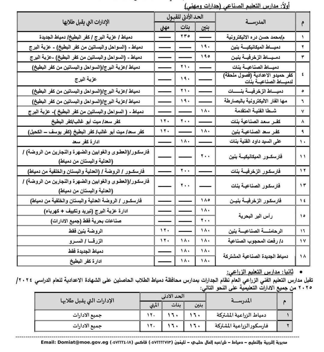 محافظ دمياط يعتمد تنسيق القبول بمدارس التعليم الفني للعام الدراسي 2025 / 2026