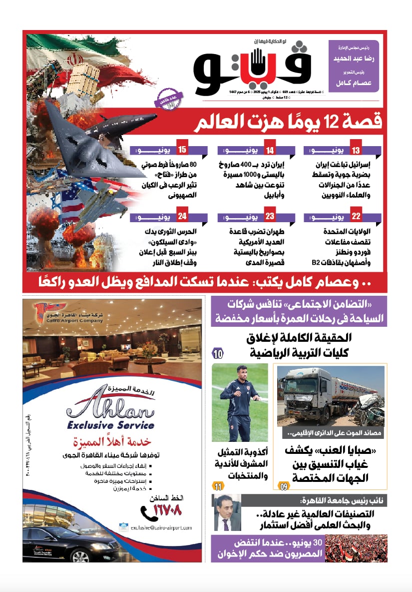 تكشف «فيتو» في عددها الجديد قصة 12 يومًا هزت العالم بسبب الحرب بين إسرائيل وإيران.