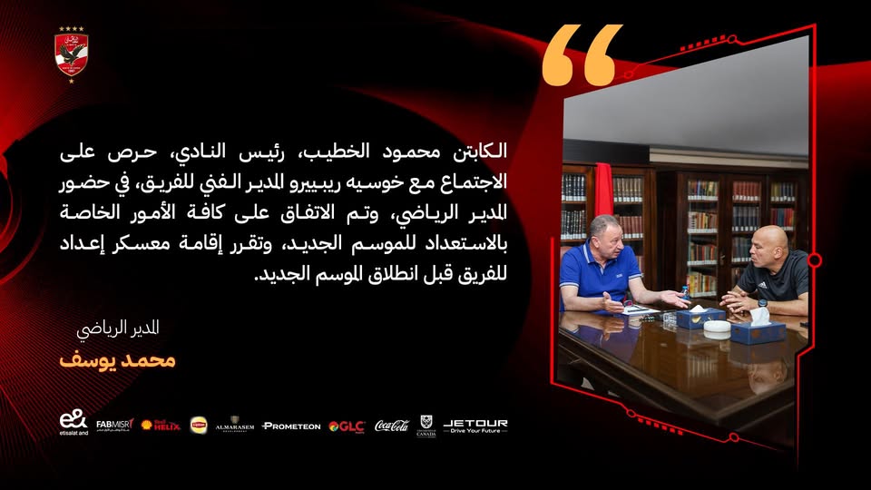 وجاء اجتماع الخطيب مع خوسيه ريبيرو للاتفاق على كافة الأمور الخاصة بالاستعداد للموسم الجديد، وتقرر إقامة معسكر إعداد للفريق قبل انطلاق الموسم".