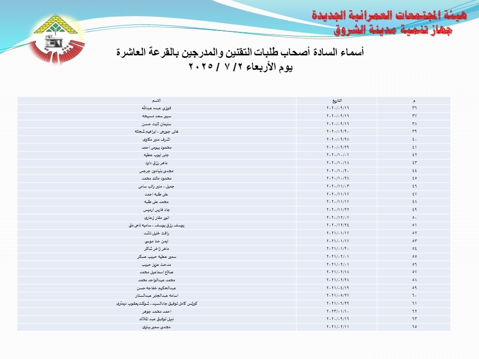 أعلنت وزارة الإسكان والمرافق والمجتمعات العمرانية، إجراء القرعة العلنية اليدوية العاشرة لتسكين المواطنين الذين سددوا المقدمات الخاصة بالمساحات التي تم توفيق أوضاعها لهم بنطاق منطقة الرابية بشرائح مساحات محددة بمدينة الشروق، وذلك غدا الاربعاء الموافق 2 يوليو.