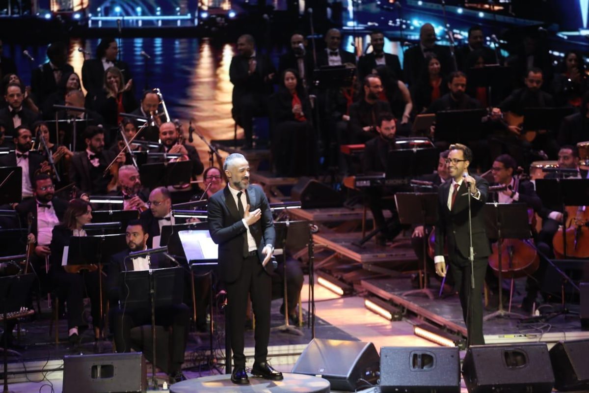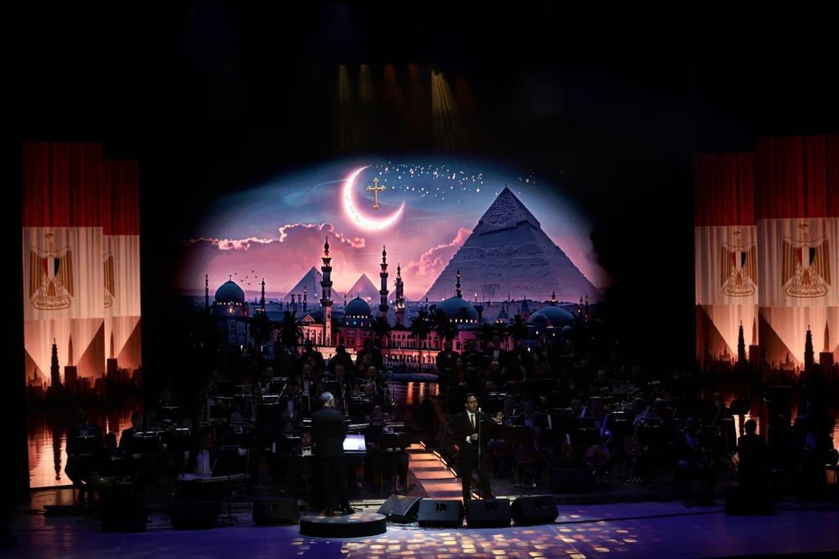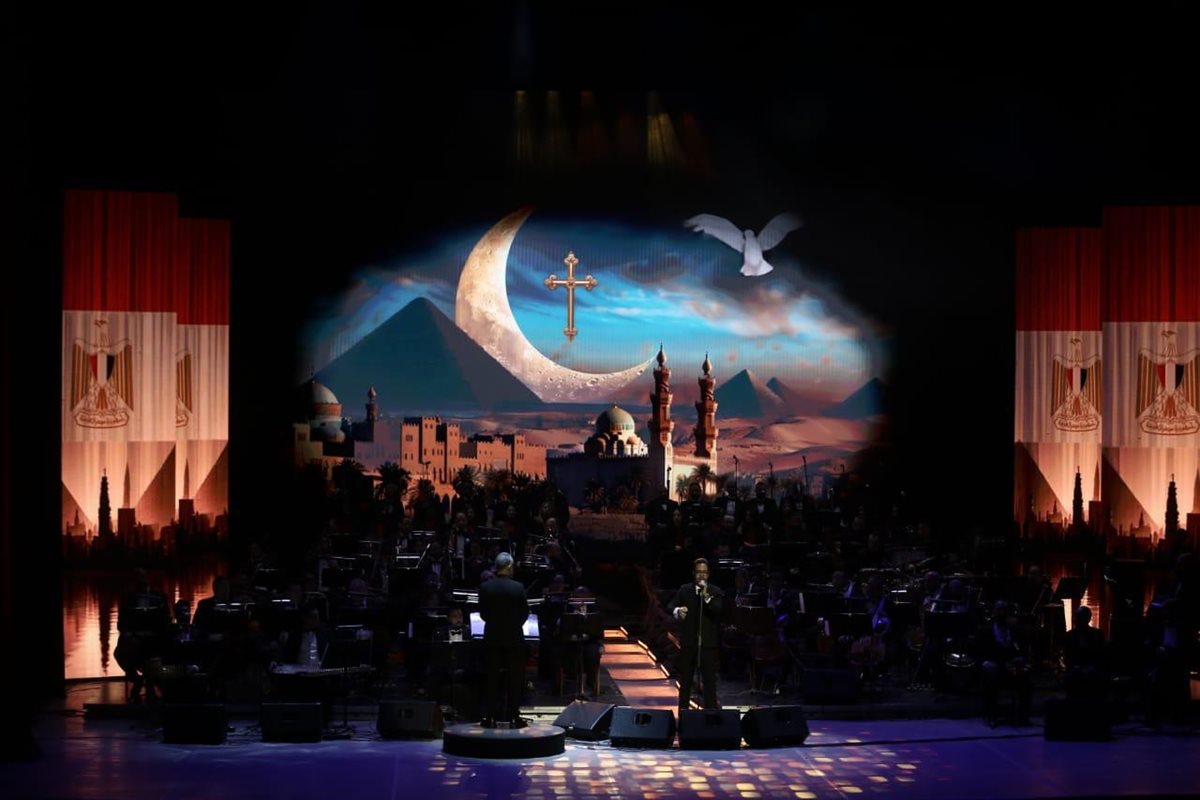 فعلى المسرح الكبير وتحت اشراف امانى السعيد نسجت الفرقة القومية العربية للموسيقى بقيادة المايسترو الدكتور مصطفى حلمى لوحة فنية حماسية من إخراج مهدي السيد مزجت الموسيقى والغناء بمشاعر العزة والفخر بالوطن واستضافت الشاعر عبد الله حسن مع نخبة من نجوم الغناء بالأوبرا، ونجحت فى تقديم بانوراما من المؤلفات التى روت بطولات الأمة على مر التاريخ فى فاصلين بدا الاول بقصيدة بحب مصر القاها الشاعر عبد الله حسن ، تلاها يا نسمة الحرية، بالسلام احنا ابتدينا، الله يا بلادنا، يا أغلى اسم فى الوجود، أحلف بسماها، نشيد الجامعة، أوبريت الأرض الطيبة واستهل الفاصل الثانى بعرض مقطع مصور لكلمة الرئيس عبد الفتاح السيسى التى جسدت ارادة الشعب منذ 12 عام اعقبها أوبريت الجيل الصاعد، سلمولى على مصر، النجمة مالت على القمر، حبايب مصر، عاش اللى قال، مصر هى امى، ياللى عاش حبك يعلم، قصيد الوحدة الوطنية، أوبريت الوطن الأكبر .. اداها كل من أحمد عصام، غادة آدم، محمد طارق، منار سمير، أحمد سعيد، آيات فاروق، مي حسن، إيناس عز الدين، هند النحاس، أشرف وليد، أحمد عفت، يحيى عبد الحليم.