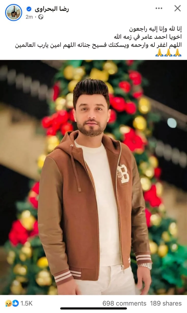 وفاة المطرب أحمد عامر ورضا البحراوي ينعاه بكلمات مؤثرة