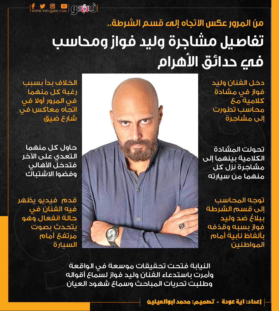 من المرور عكس الاتجاه إلى قسم الشرطة.. تفاصيل مشاجرة وليد فواز ومحاسب في حدائق الأهرام (إنفوجراف)