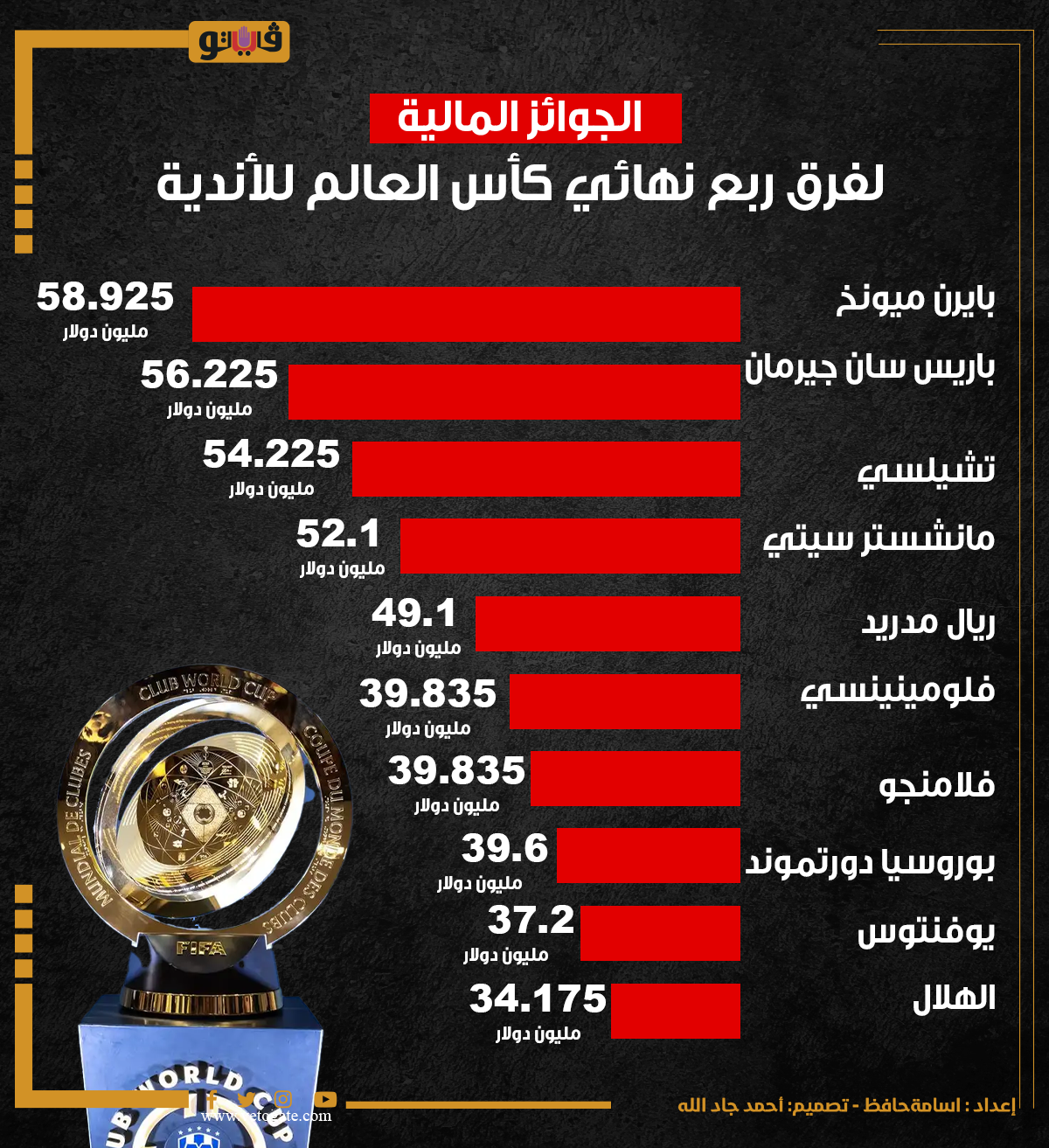 الجوائز المالية لفرق ربع نهائي كأس العالم للأندية (إنفوجراف)