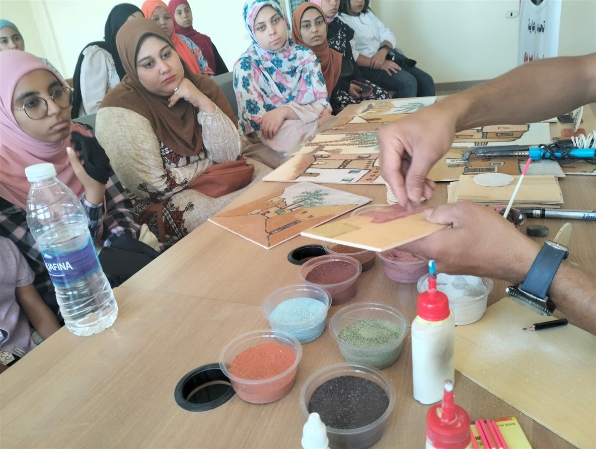 وتولى تنفيذ الورشة وتدريب الطلاب المدرب أحمد حامد، أحد أبرز المتخصصين في فنون الرسم بالرمال، حيث قام بتقديم شرح وافٍ حول أدوات وتقنيات الرسم بالرمال، وكيفية تحويل المواد الأولية إلى لوحات فنية تحمل طابعًا تراثيًا وجماليًا يعكس البيئة المصرية الأصيلة.