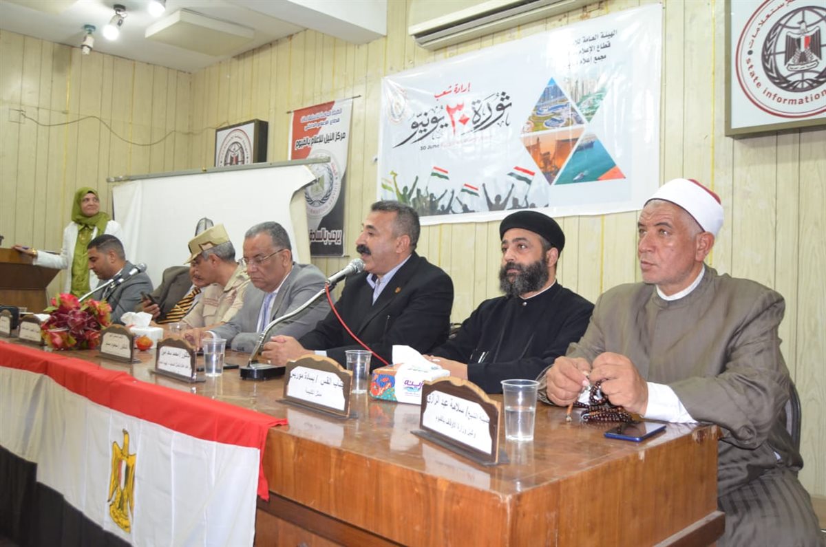 وقال الدكتور محمد سعد مدير عام إعلام شمال الصعيد، إن الشعب المصرى العظيم كان له الدور الكبير فى استعادة الوطن عندما استشعر الخطر على وطنه وهويته كما وجه تحية للجيش الوطنى الذى استجاب لنداء الملايين التى خرجت فى الشوارع لتصحيح المسار واستعادة مصر بقوتها ووحدتها.