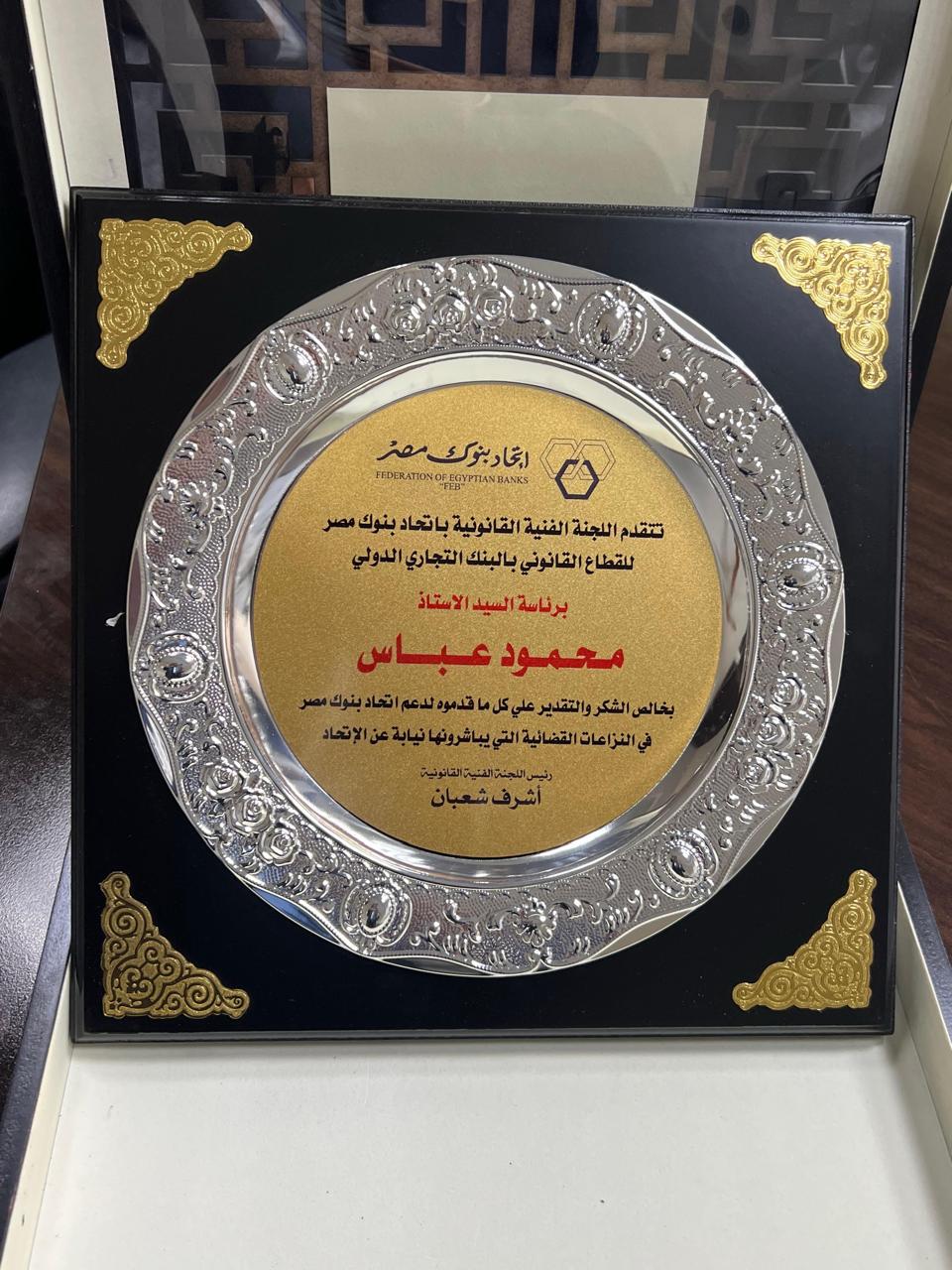 وقد جرى التكريم خلال اجتماع اللجنة الفنية القانونية لاتحاد بنوك مصر، بحضور محمد شعبان – وكيل محافظ البنك المركزي المصري، وأشرف شعبان – المستشار القانوني للاتحاد، وعدد من كبار مسؤولي القطاعات القانونية بالبنوك.