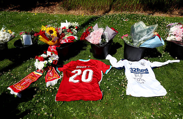 وضعت مجموعة من جماهير نادي ليفربول الورود وقمصان النادي أمام مقر الفريق بعد ساعات من الإعلان عن وفاة مهاجم الريدز البرتغالي ديوجو جوتا.