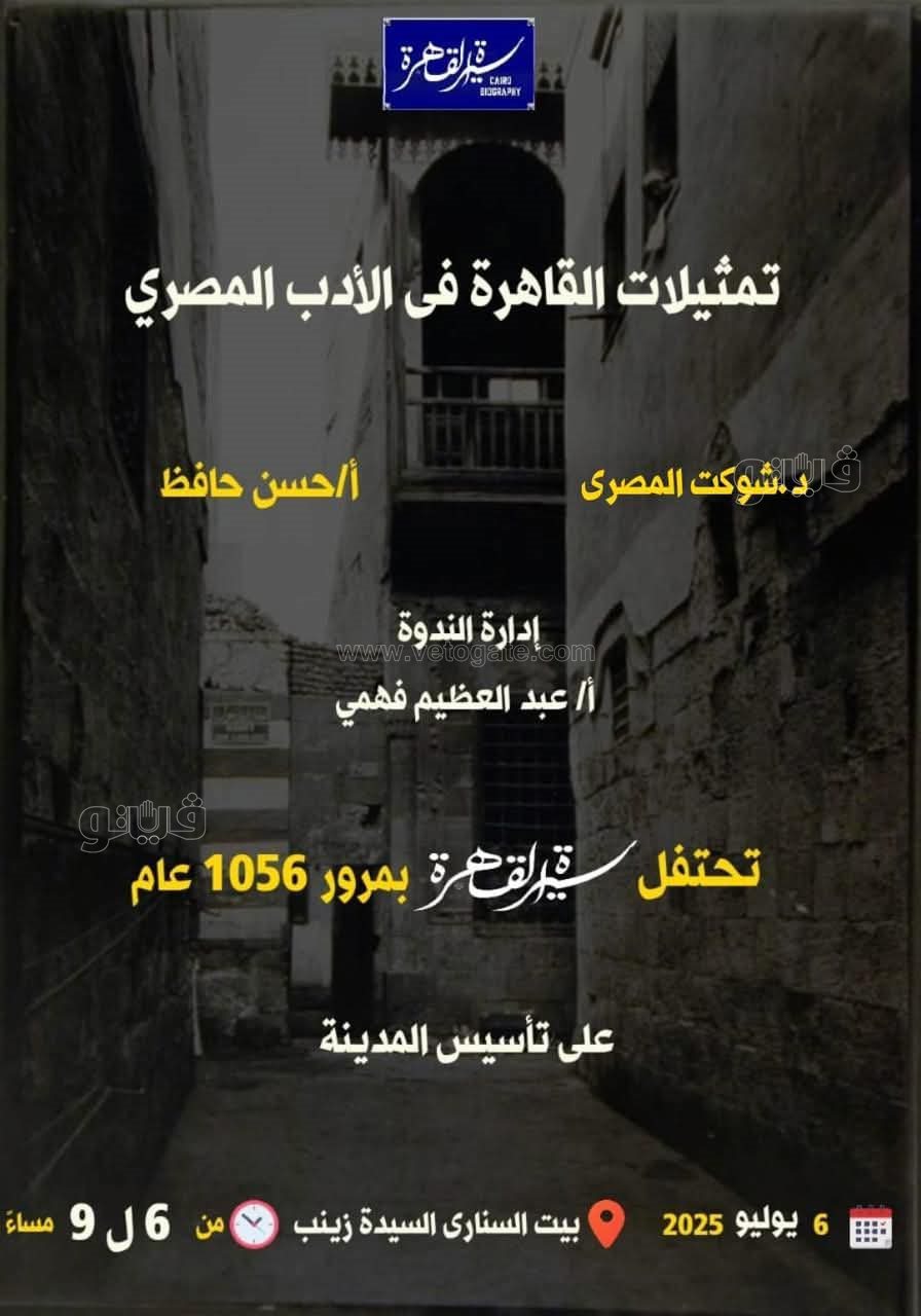 ينظم بيت السناري التابع لقطاع التواصل الثقافي بمكتبة الإسكندرية، بالتعاون مع مبادرة "سيرة القاهرة"، ندوة بعنوان "تمثيلات القاهرة في الأدب المصري"، وذلك بمناسبة مرور 1056 عامًا على تأسيس مدينة القاهرة، الأحد 6 يوليو في تمام الساعة 6 مساءً ببيت السناري بالسيدة زينب.