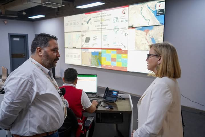 وكان استقبال الوزيرة الدكتور عادل العدوي وزير الصحة الأسبق وعضو مجلس إدارة الهلال الأحمر المصري، والدكتورة آمال إمام المديرة التنفيذية للهلال الأحمر المصري، للتعرف على أنشطة الهلال والاطلاع على جهود مصر في دعم الإنساني والإغاثي المقدم لغزة.