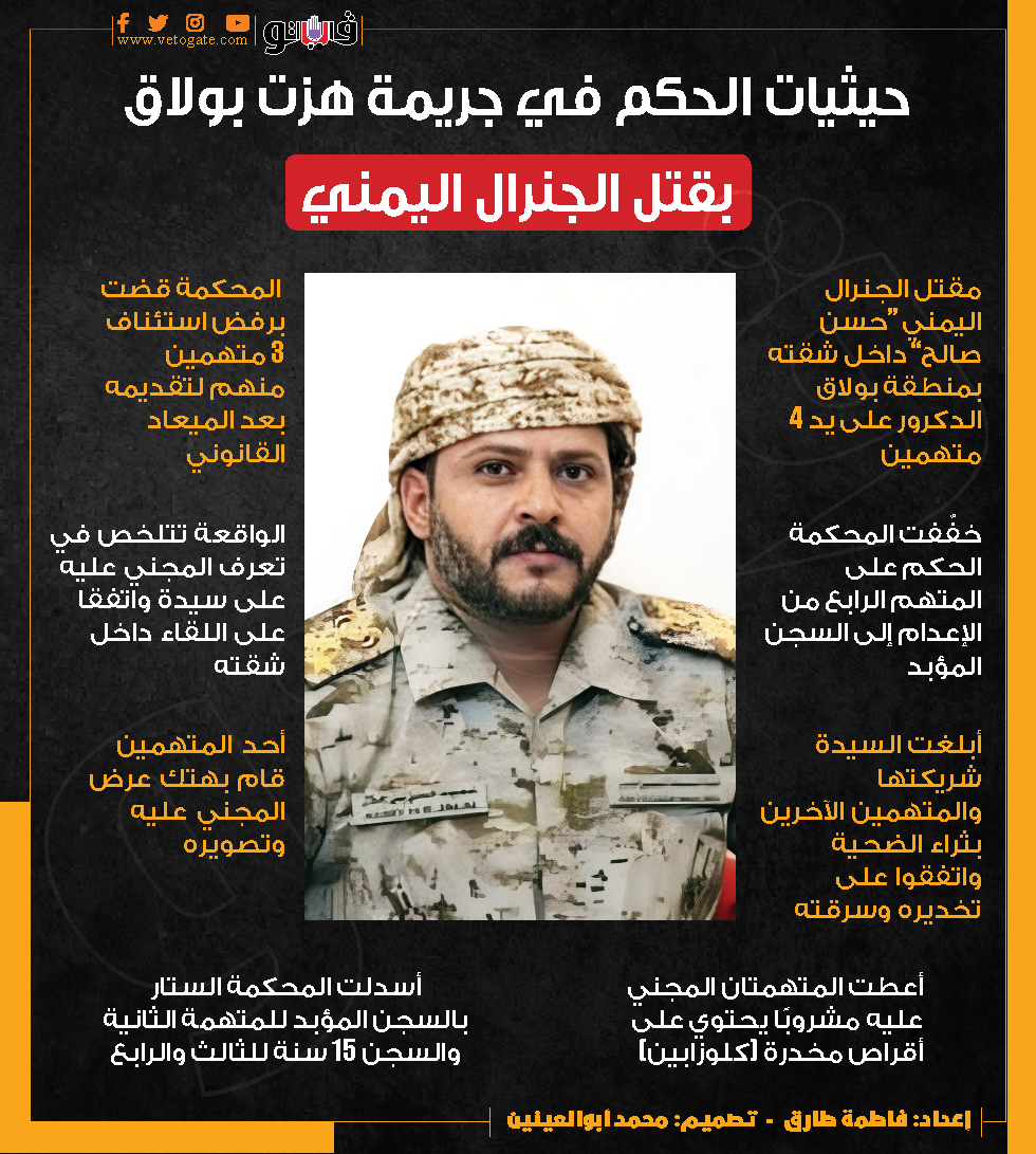 حيثيات الحكم في جريمة هزت بولاق بقتل الجنرال اليمني (إنفوجراف)