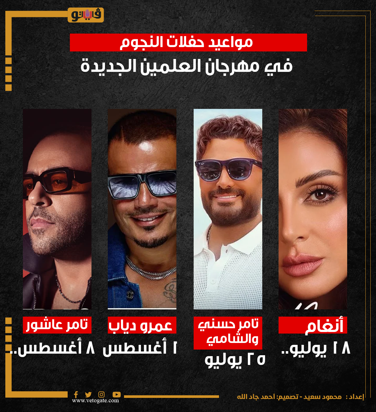 مواعيد حفلات النجوم في مهرجان العلمين الجديدة 2025 (إنفوجراف)