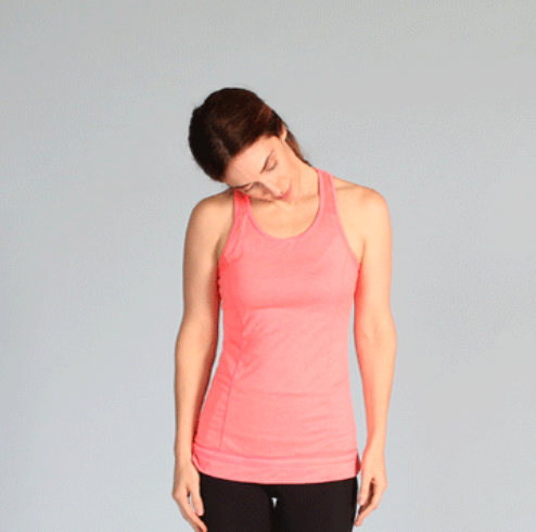 إرخاء الرقبة: طريقة لطيفة لتخفيف التوتر في كل من الكتفين والرقبة. اخفض رأسك مقربًا ذقنك من صدرك، ثم أمِل رأسك برفق نحو الجانب الأيمن وتوقف لمدة 30 ثانية. عد إلى المنتصف وكرر التمرين على الجانب الآخر من 3 إلى 5 مرات لكل جانب.