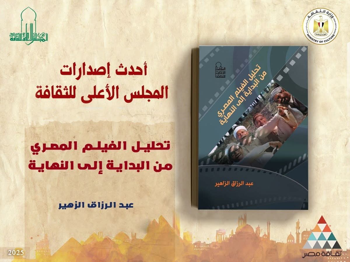 صدر حديثا عن المجلس الأعلى للثقافة كتاب:"تحليل الفيلم المصري من البداية إلى النهاية" تأليف الكاتب المغربي الكبير عبد الرزاق الزاهير، بتصميم الغلاف الفنان عبد العزيز السماح.