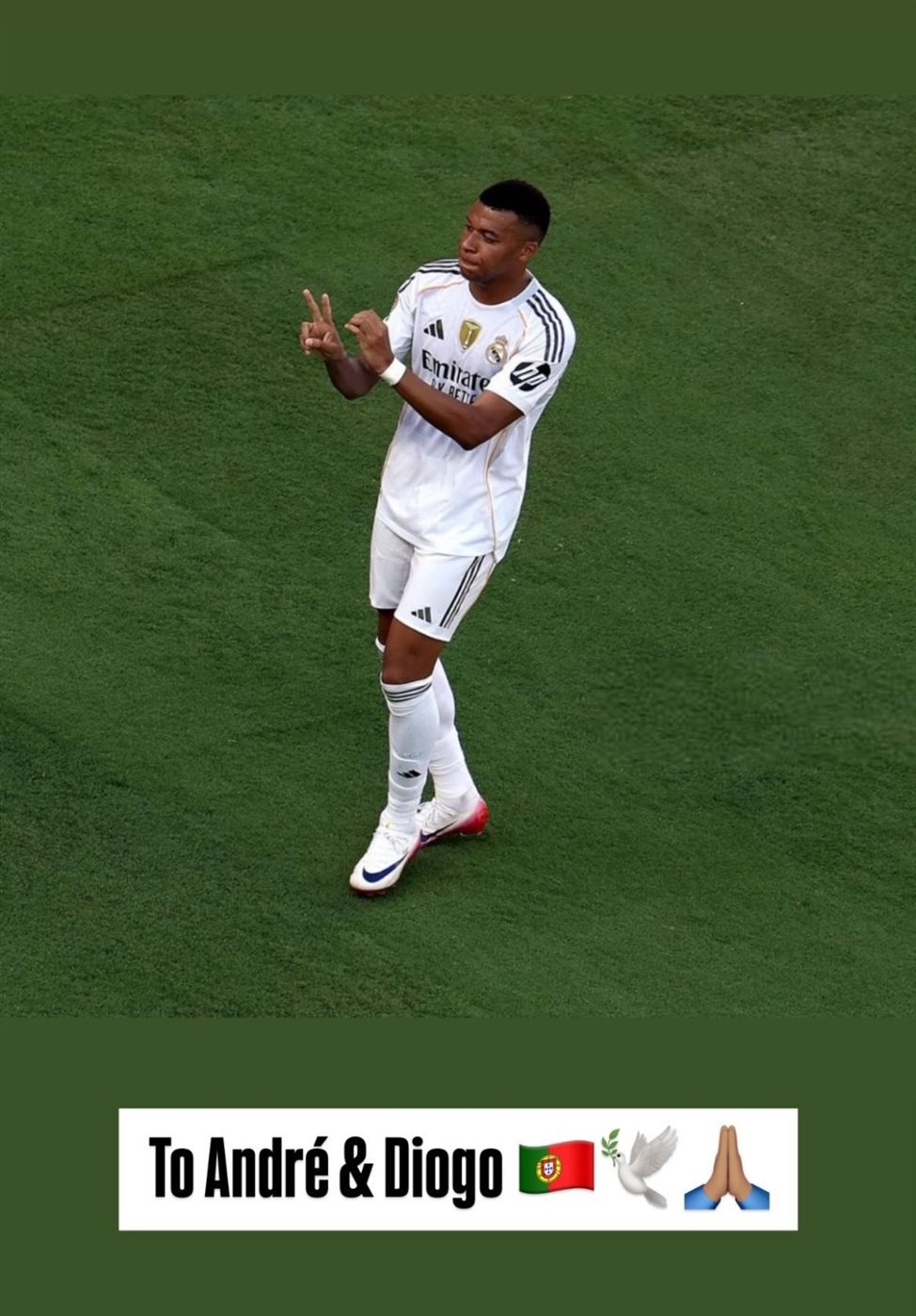 وسجل مبابي هدف ريال مدريد الثالث، وعقب الهدف أشار بيديه بالرقم 20، إشارة لرقم قميص الراحل جوتا، الذي تعرض لحادث مفجع يوم الخميس الماضي.
