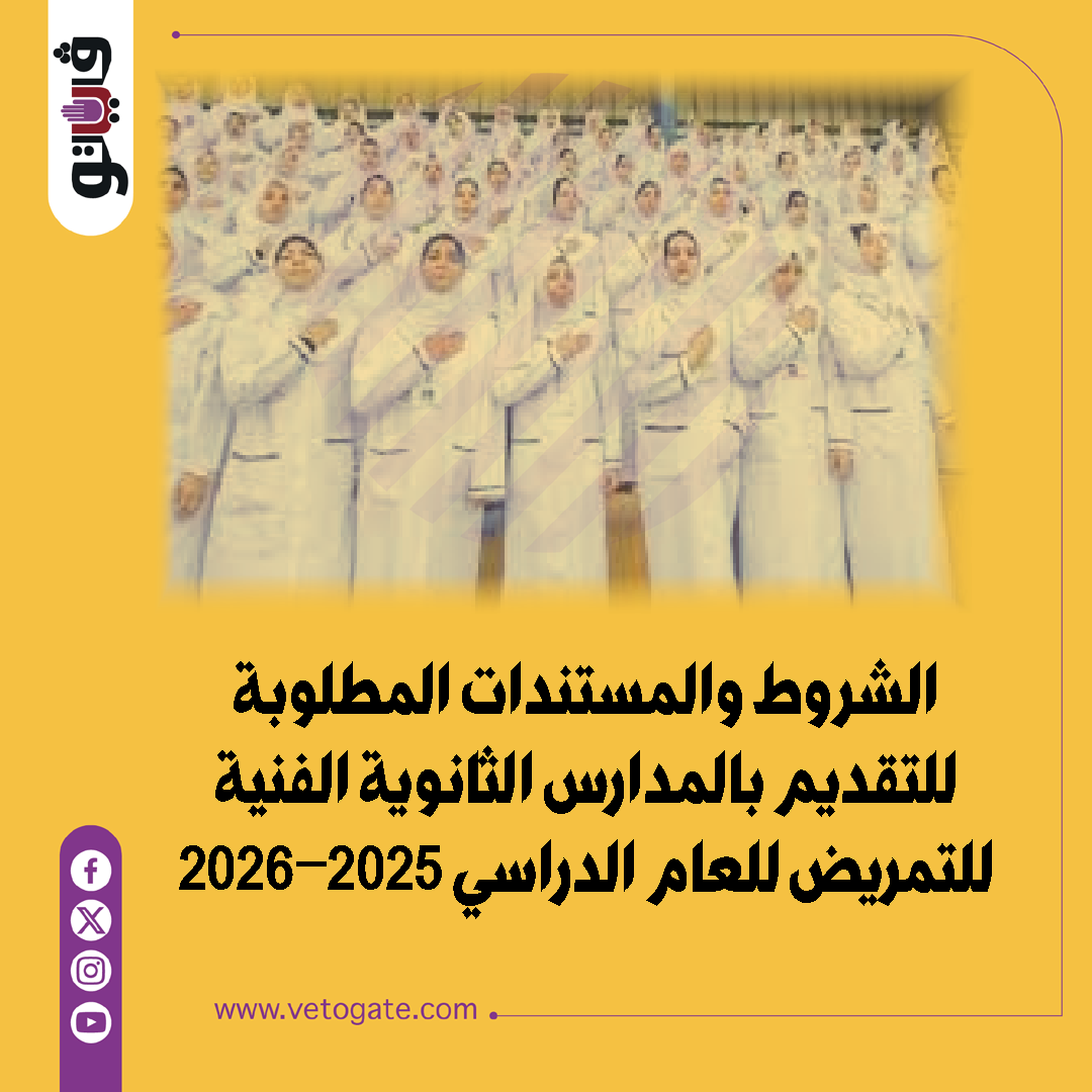 الشروط والمستندات المطلوبة للتقديم بالمدارس الثانوية الفنية للتمريض للعام الدراسي 2025-2026 (انفوجراف)