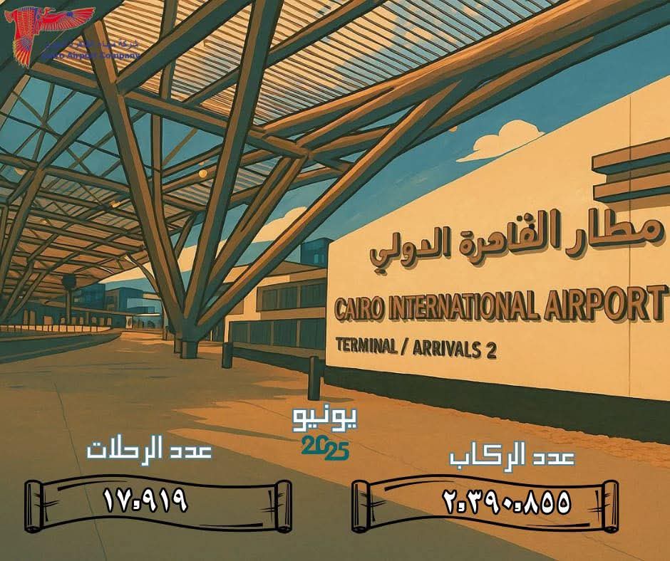 سجّل مطار القاهرة الدولي خلال شهر يونيو 2025 حركة نشطة في أعداد الركاب والرحلات، حيث بلغ إجمالي عدد الركاب 2,390,855 راكبًا، على متن 17,919 رحلة جوية.