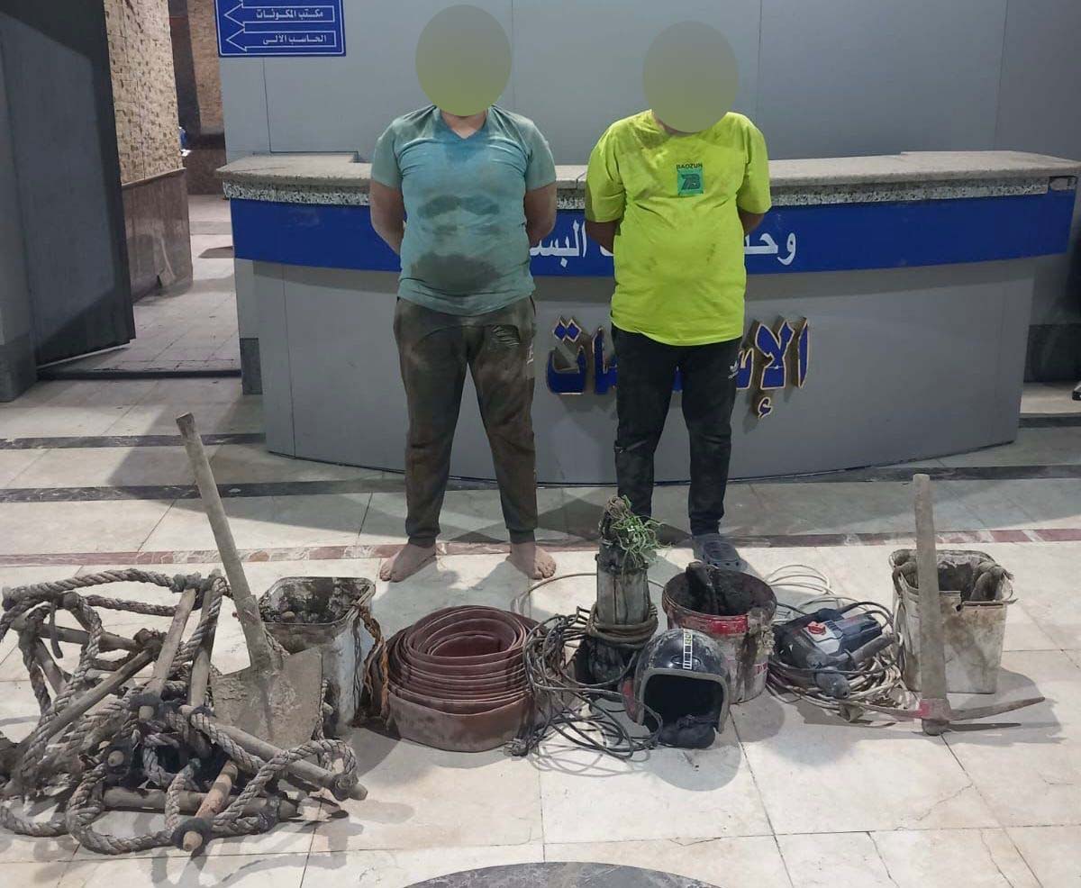 وعقب تقنين الإجراءات، جرى مداهمة قوات الشرطة، الموقع، وضبط المتهمَين أثناء الحفر، كما تم ضبط الأدوات المستخدمة في عملية التنقيب.
