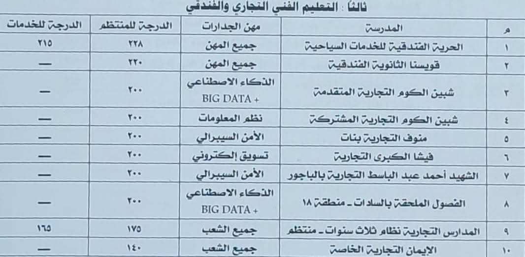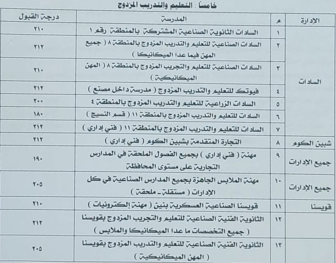 وأشار الدكتور محمد صلاح وكيل وزارة التربية والتعليم بالمنوفية إلى أنه تم تقدير تنسيق القبول بنوعيات التعليم المختلفة للعام الدراسي 2025/2026 وفقًا للجنة المشكلة برئاسة مدير عام التعليم العام والتعليم الفني بالمديرية، مشيرًا إلى أنه يتم مراعاة النزول بمجموع تنسيق القبول وفقًا للوائح المنظمة ومنها إقرار المدرسة بوجود أماكن وعدم اكتمال الكثافة حتى يتحقق التوازن بين التعليم العام والفني ولشغل جميع التخصصات بالتعليم الفني بما يحقق العدالة للاستفادة من جميع الإمكانيات المتاحة بكافة المدارس والتخصصات.