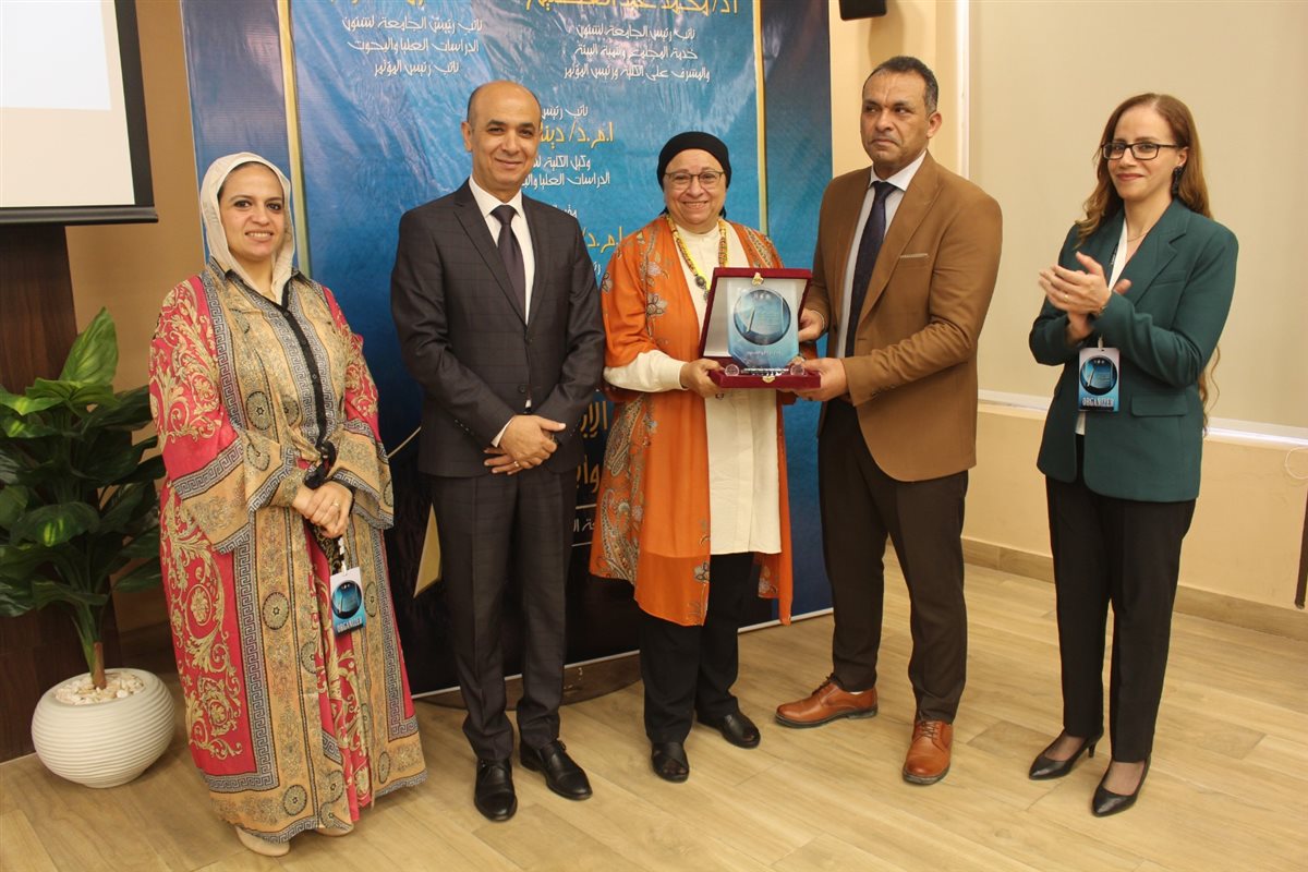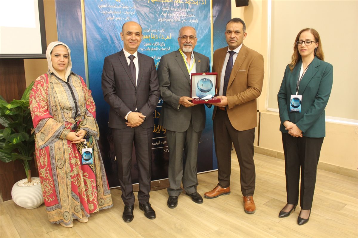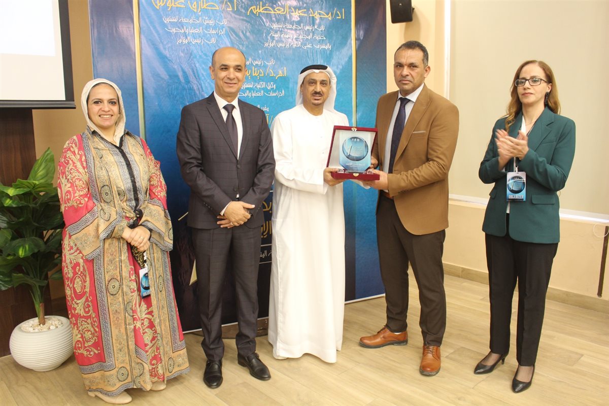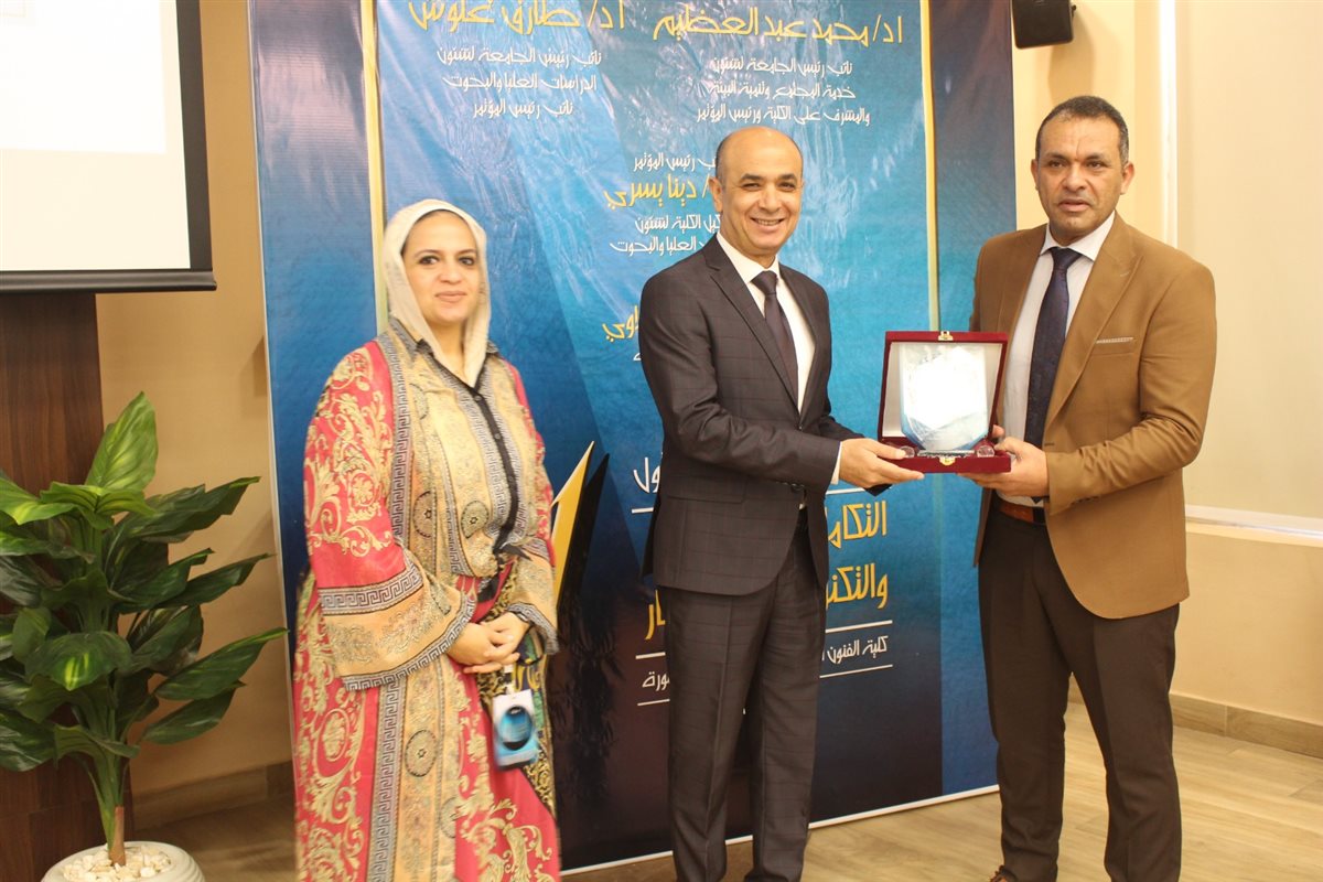 وفي ختام الجلسة الافتتاحية، كرّم الدكتور محمد عبد العظيم عددًا من الشخصيات البارزة التي ساهمت في دعم الفنون والثقافة، وقدّم دروعًا تذكاريةً لكل من: الدكتور طارق غلوش، نائب رئيس الجامعة، والمصمم هشام المظلوم – دولة الإمارات العربية المتحدة، والدكتورة عزة أبو السعود – كلية الفنون الجميلة بجامعة الإسكندرية، والدكتور مصطفى سلطان – العميد الأسبق لمعهد الفنون المسرحية بأكاديمية الفنون، والدكتور حمدي أبو المعاطي – كلية الفنون الجميلة بجامعة حلوان، والدكتور حسن متولي – العميد السابق لكلية الفنون والتصميم بالجامعة البريطانية، والأستاذ سعد عبد الوهاب – أمين عام الجامعة.
