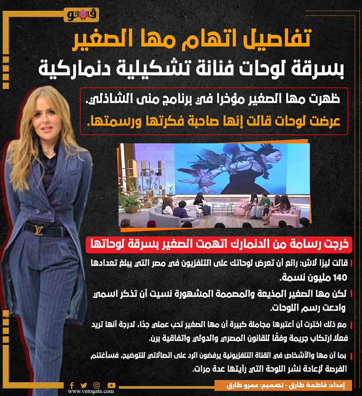 تفاصيل اتهام مها الصغير بسرقة لوحات فنانة تشكيلية دنماركية (انفوجراف)