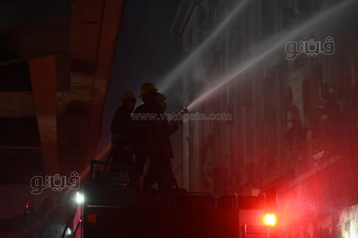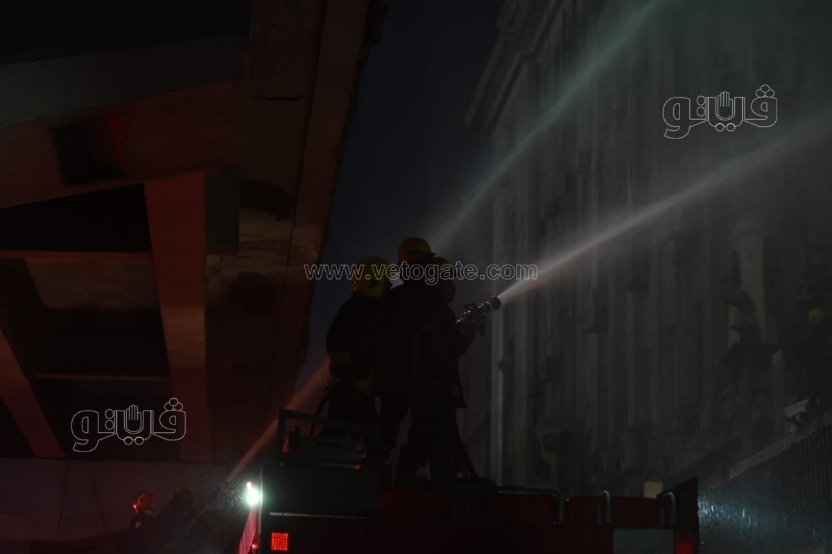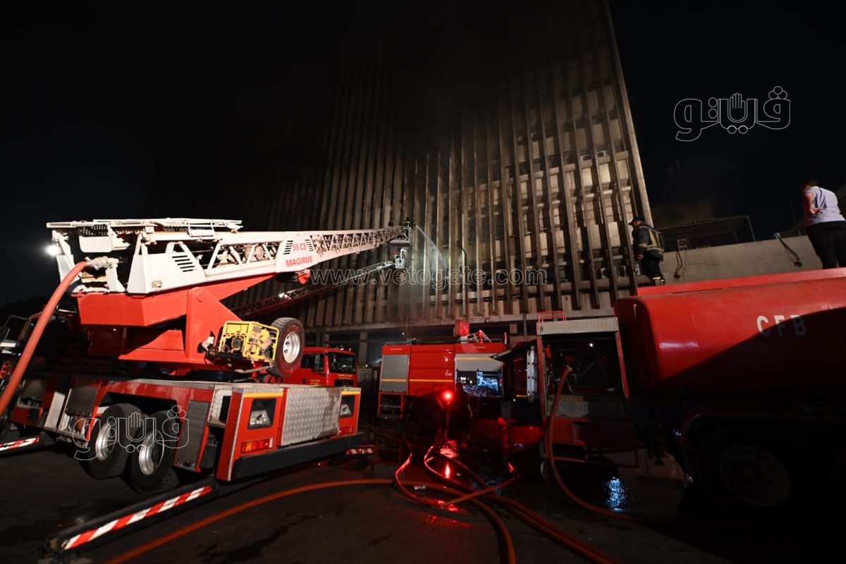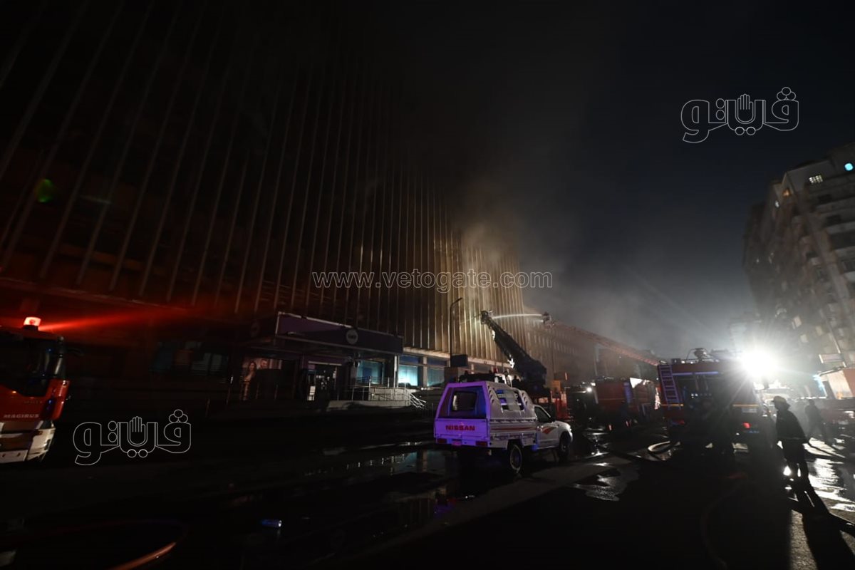 استمرار جهود قوات الحماية المدنية لإخماد حريق سنترال رمسيس (فيديو وصور)