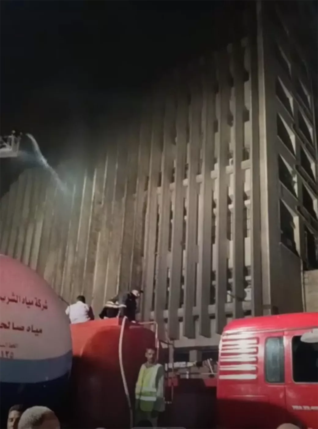 شركة مياه القاهرة تشارك في منع تجدد حريق سنترال رمسيس (صور)