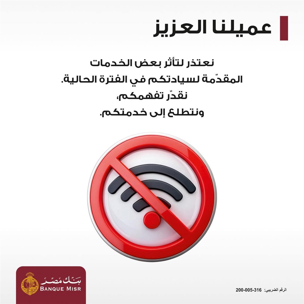 حرص بنك مصر على تقديم اعتذار لعملائه على صفحته الرسمية عبر موقع التواصل الاجتماعي فيسبوك، وذلك بسبب تأثر بعض خدمات البنك.