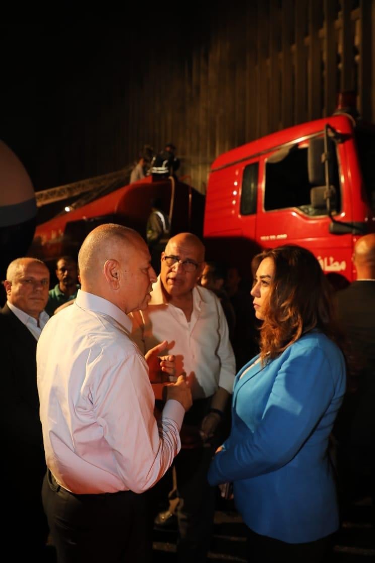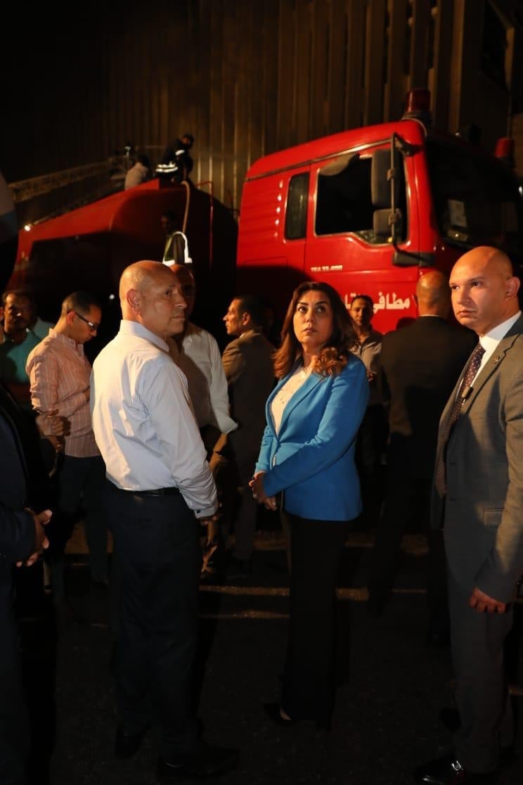 وعقب وصول وزيرة التنمية المحلية إلى موقع الحريق، استمعت إلى كافة التفاصيل الخاصة بالحادث والجهود التي تقوم بها الأجهزة التنفيذية بالمحافظة وقوات الدفاع المدني وشركة مياه الشرب بالقاهرة للسيطرة على النيران، والقيام عقب ذلك بعمليات التبريد، كما لم يسفر الحادث عن أي وفيات ونتج عنه إصابة عدد من الأشخاص من العاملين، وقوات الدفاع المدني بحالات اختناق طفيفة وتم إسعافهم.